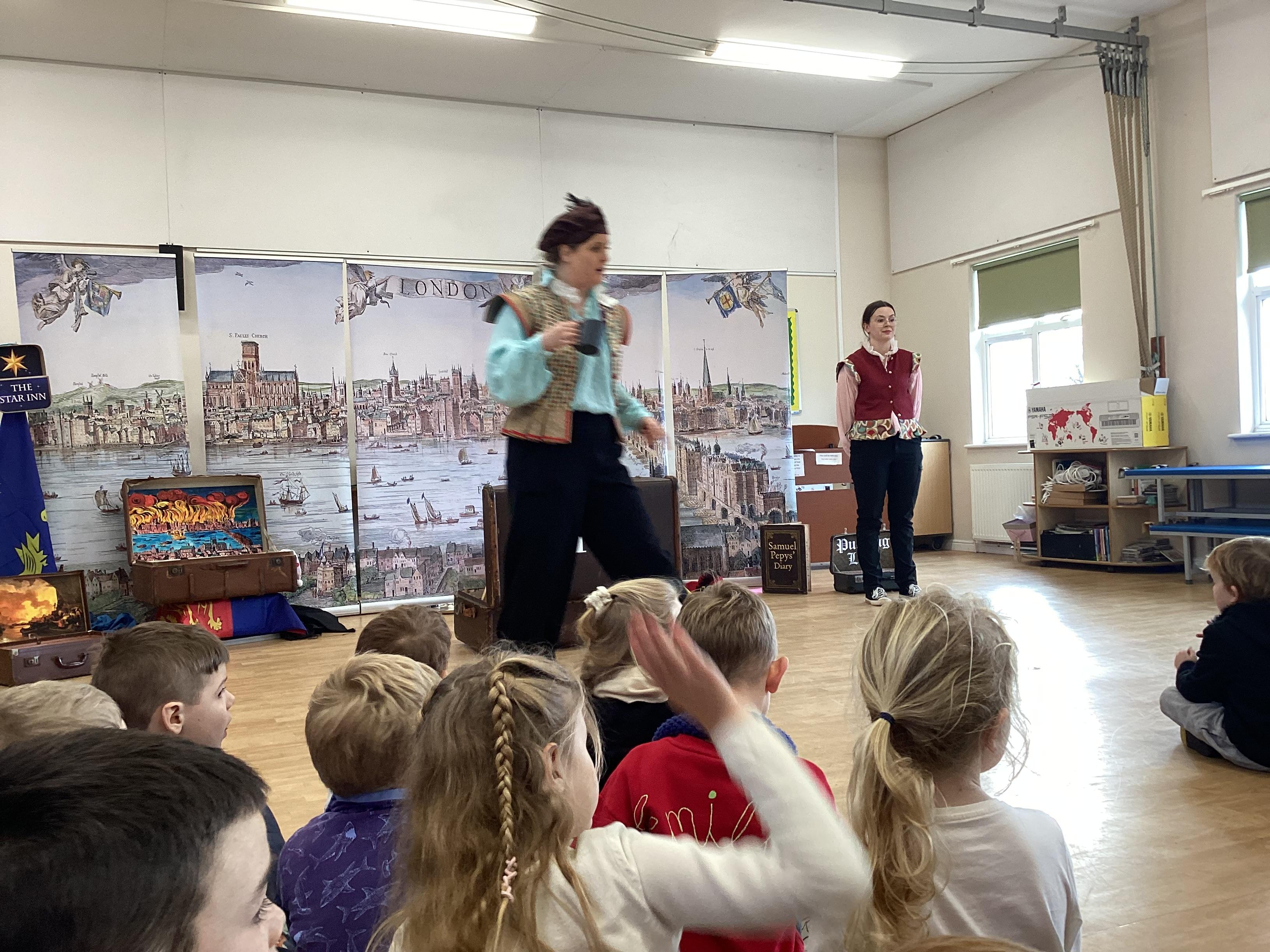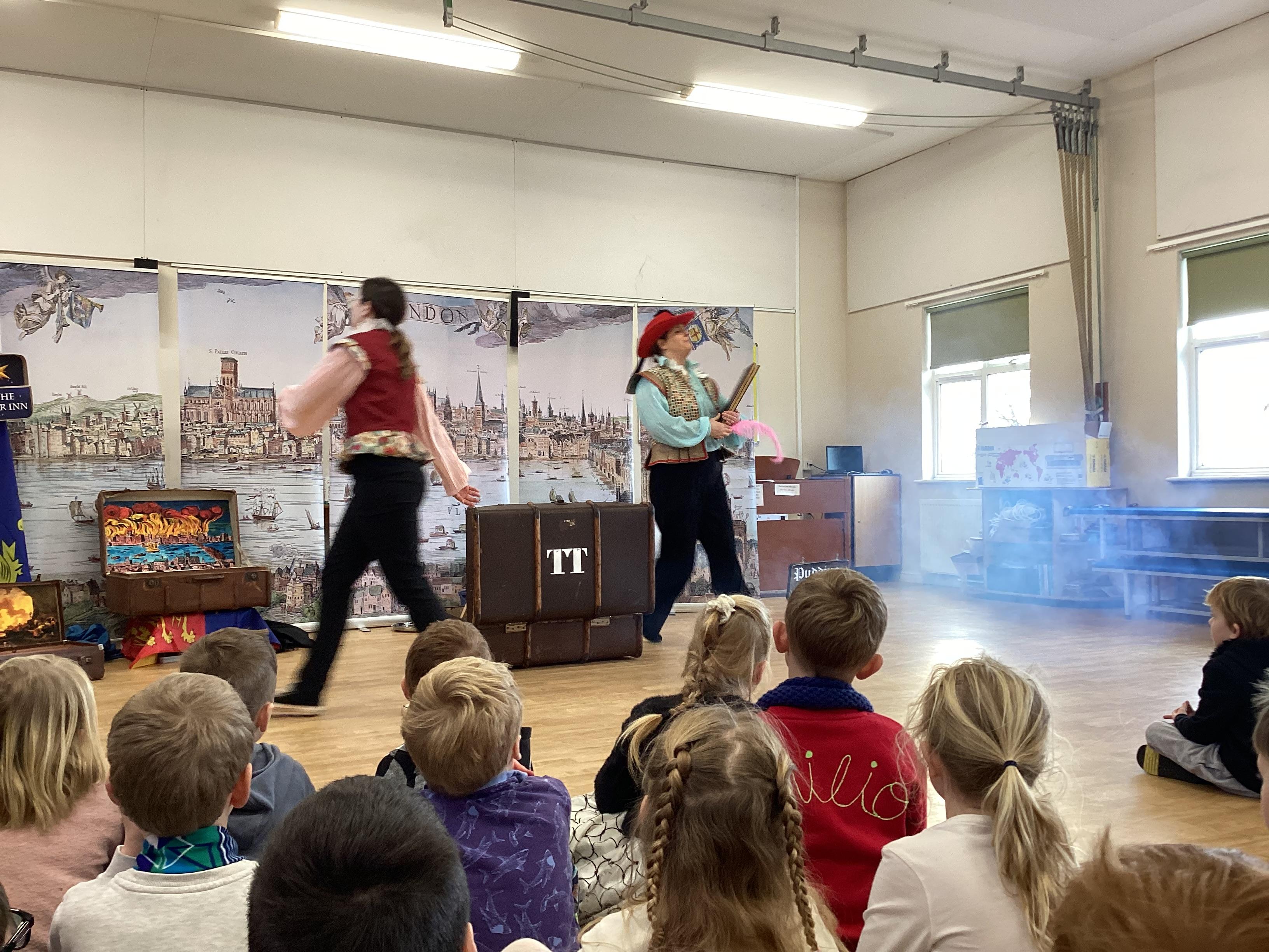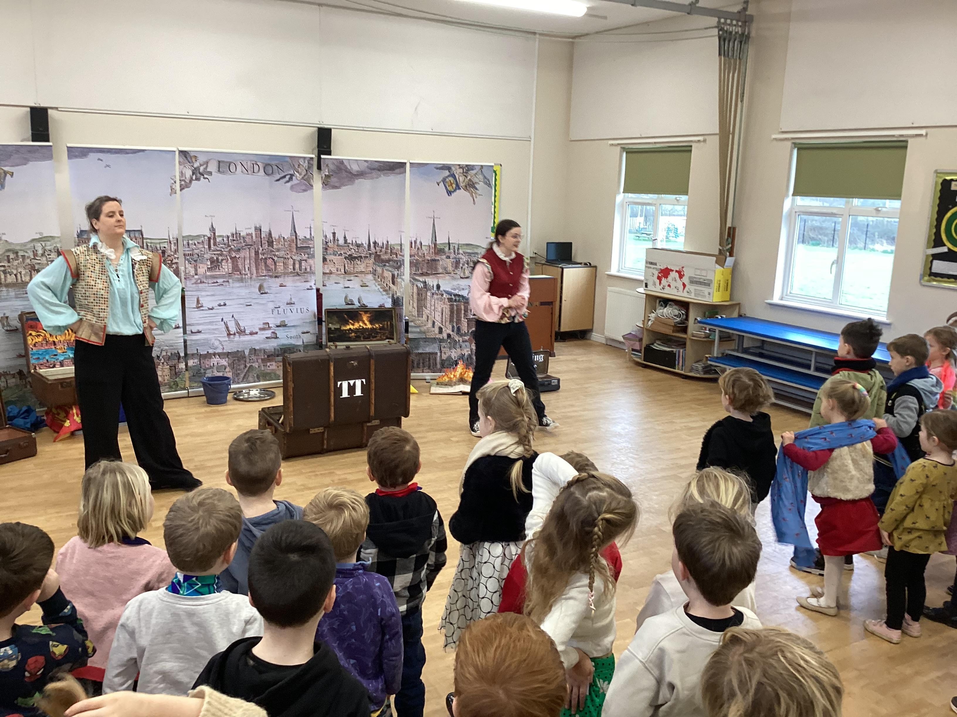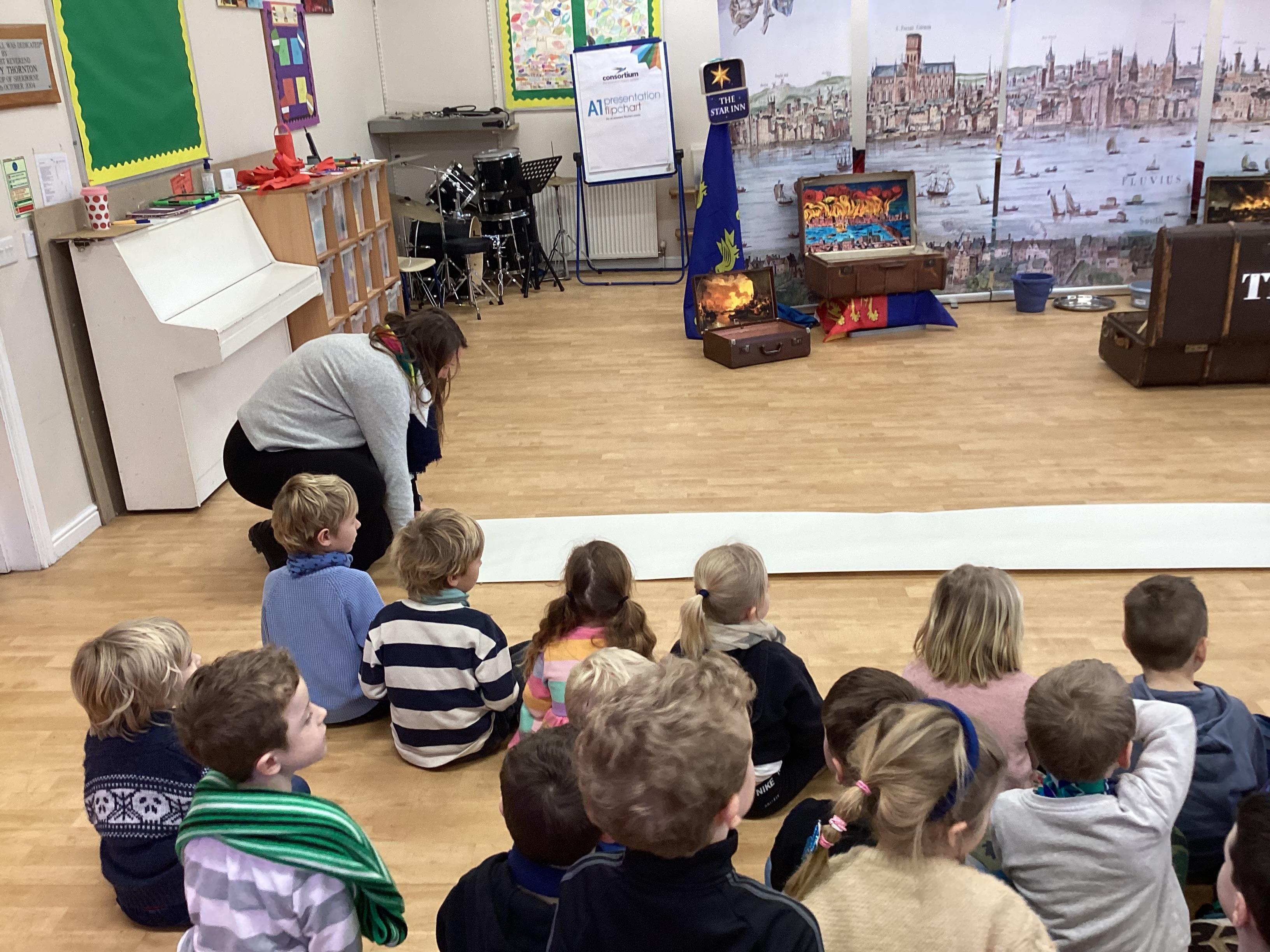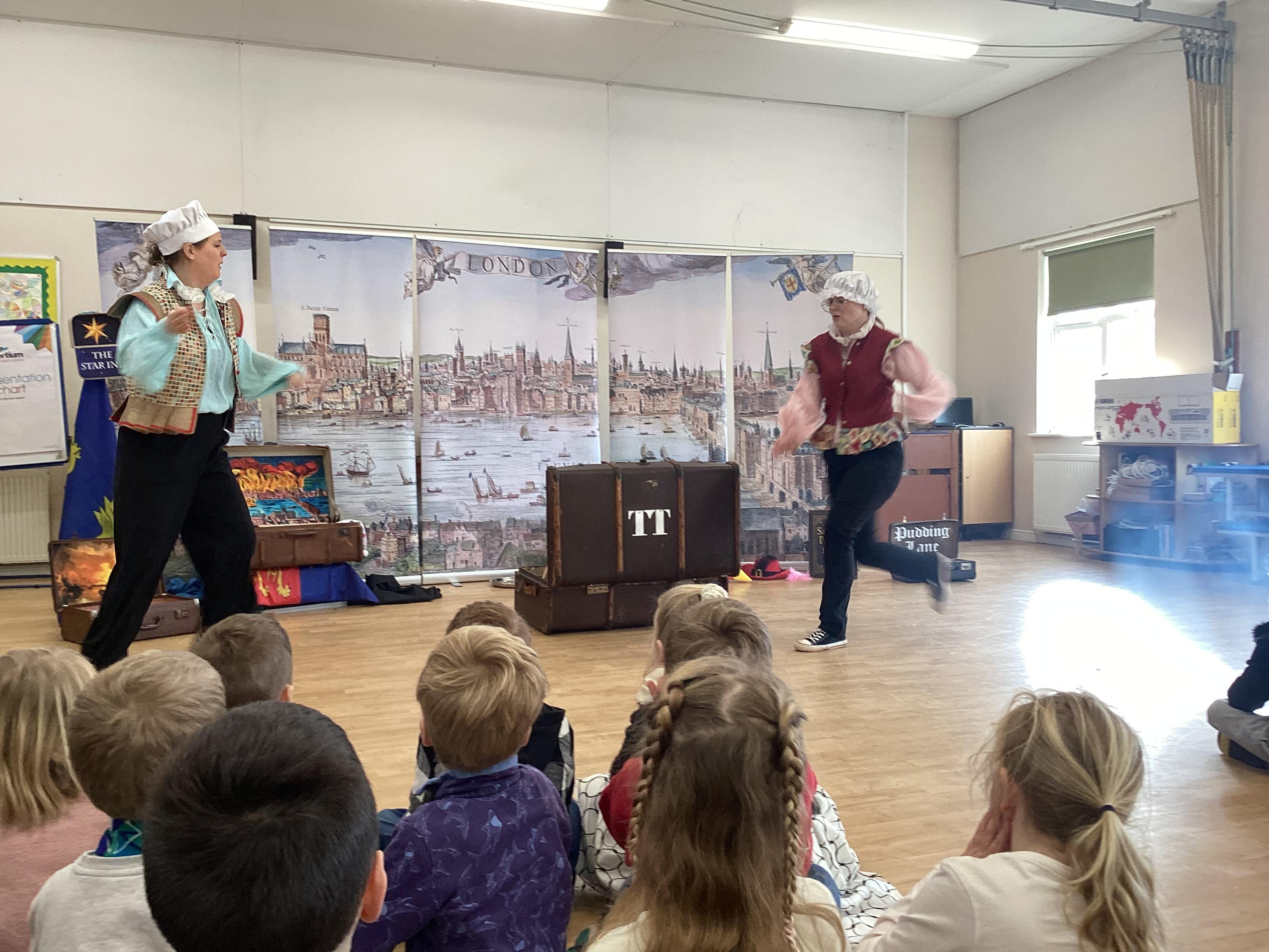 We were very lucky to have a visit from the Trunk Theatre this week to help support our History topic on The Great Fire of London. We watched the events take place and helped put the fire out! Some of us even got the chance to help with the show and we all had great fun thinking of how we could rebuild London at the end!