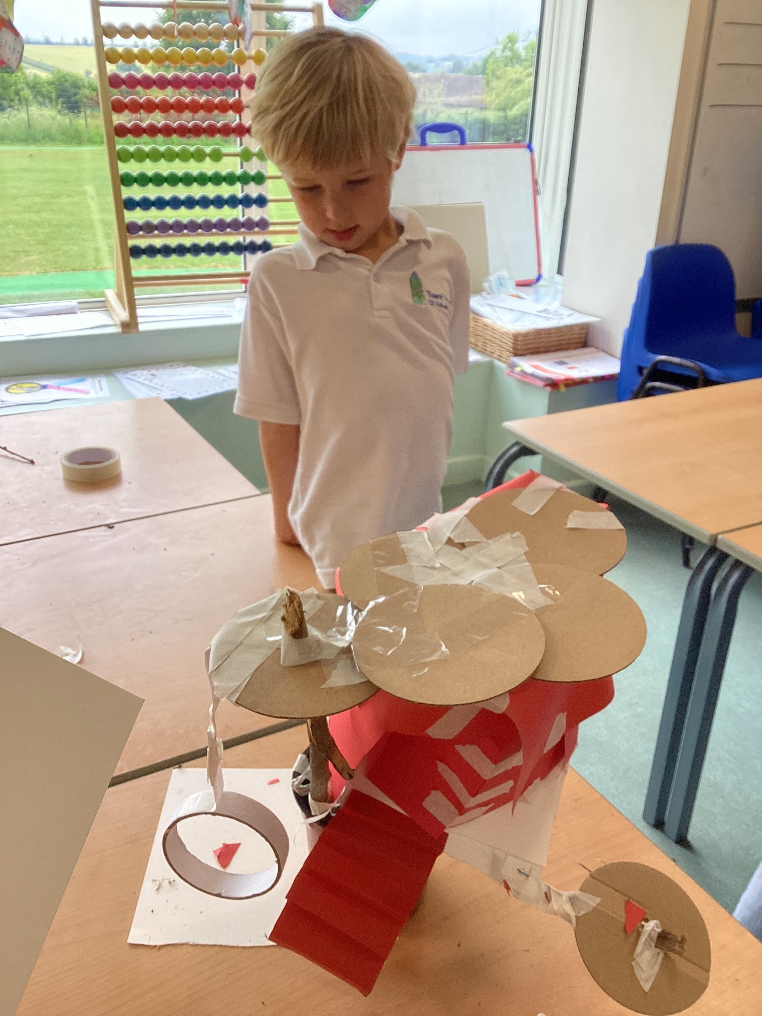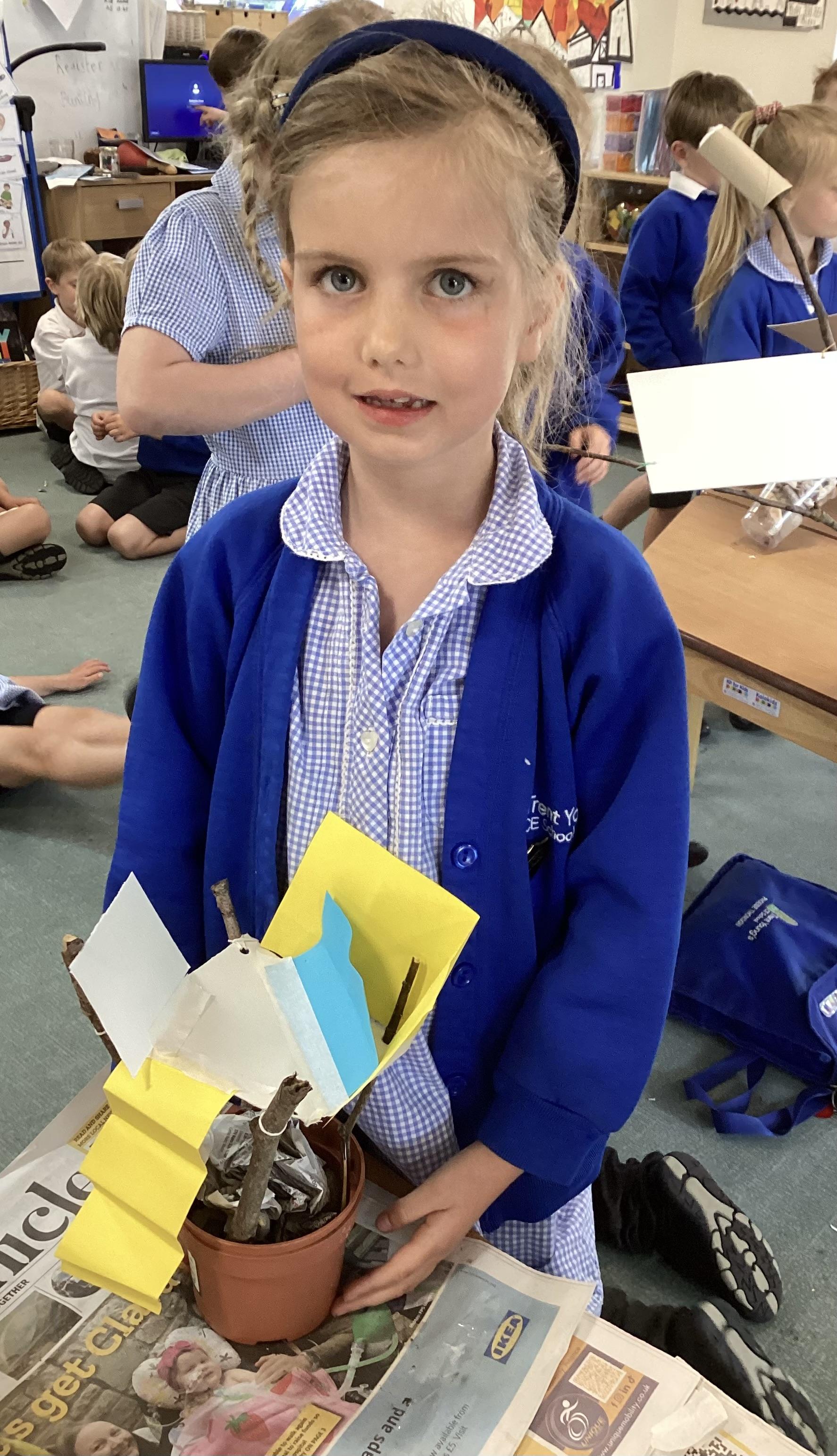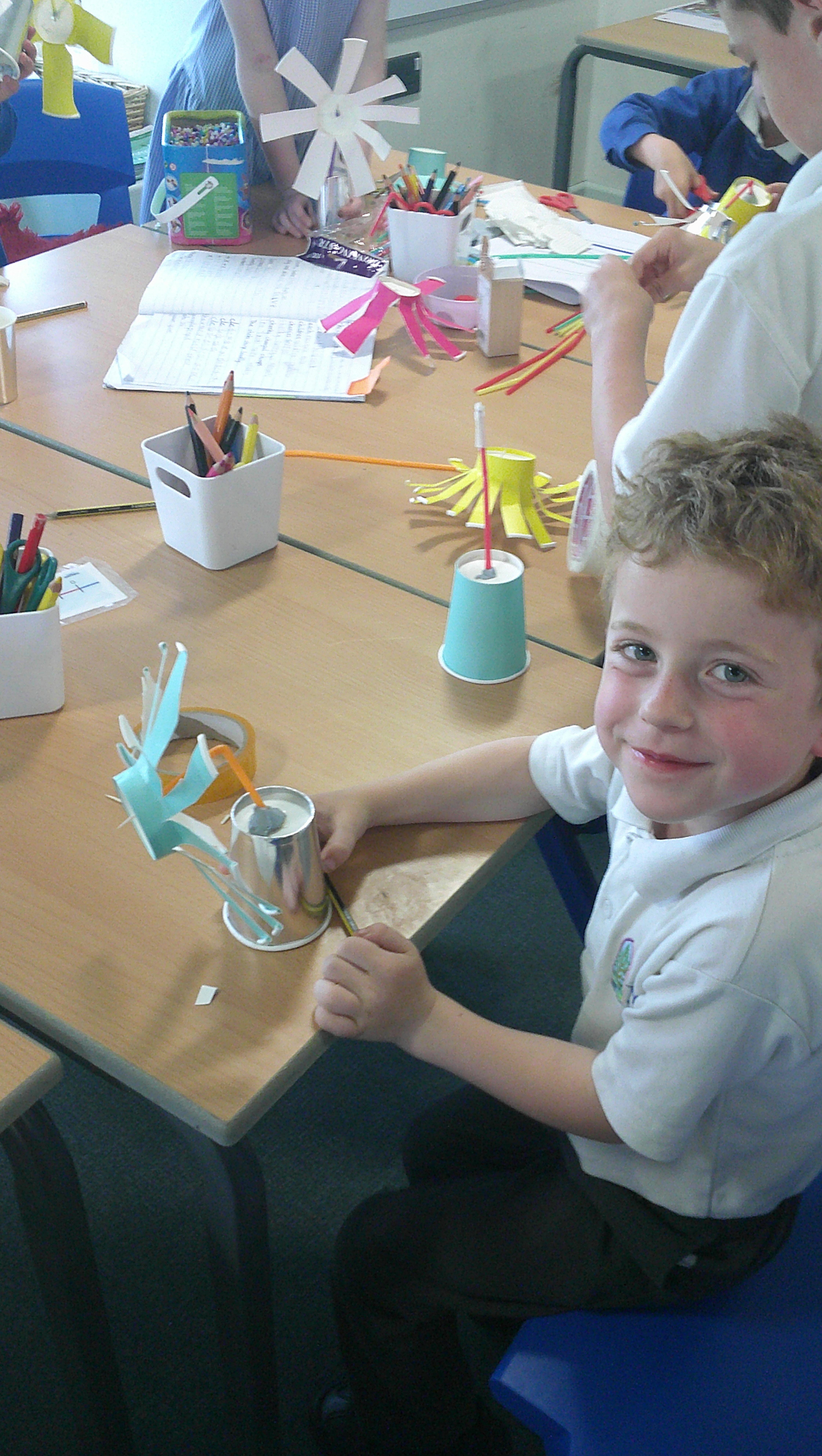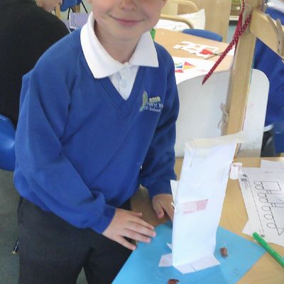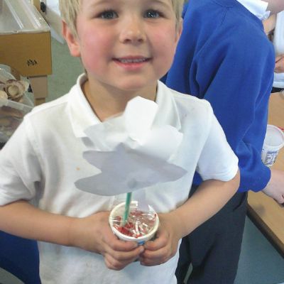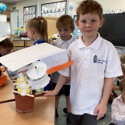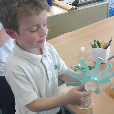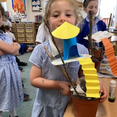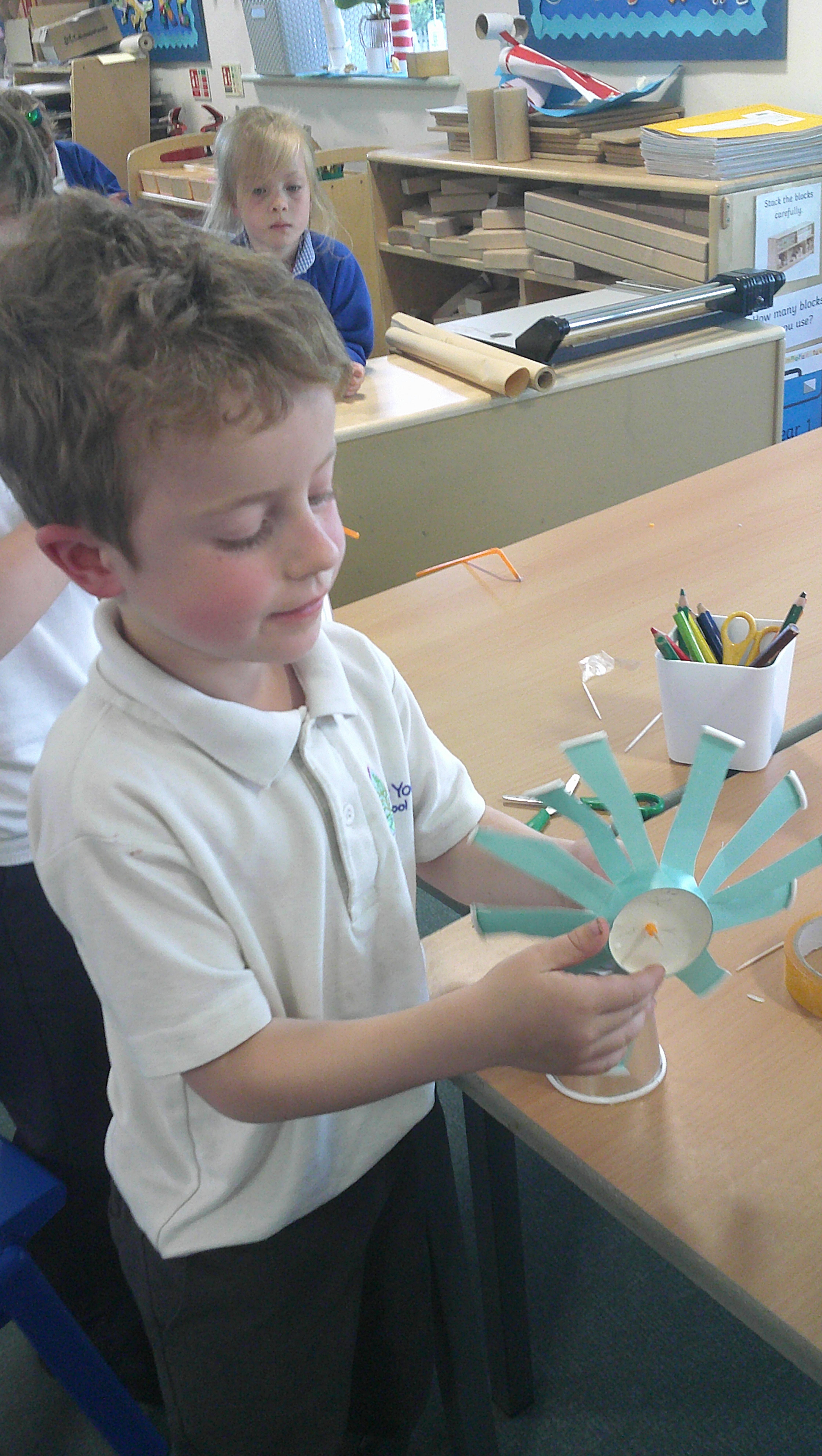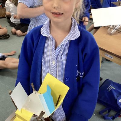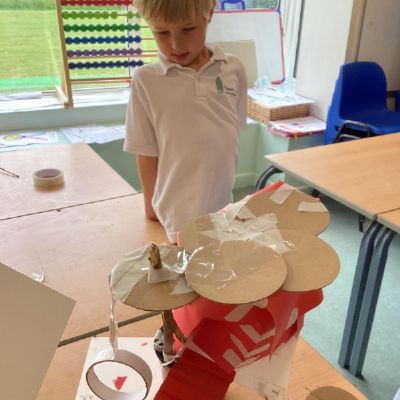 In our DT learning the children were inspired by the story 'The Little Red Hen' to create their own windmills. We investigated how to make a stable base for our freestanding structures, developed our cutting skills and applied our knowledge to join together parts of our structure.