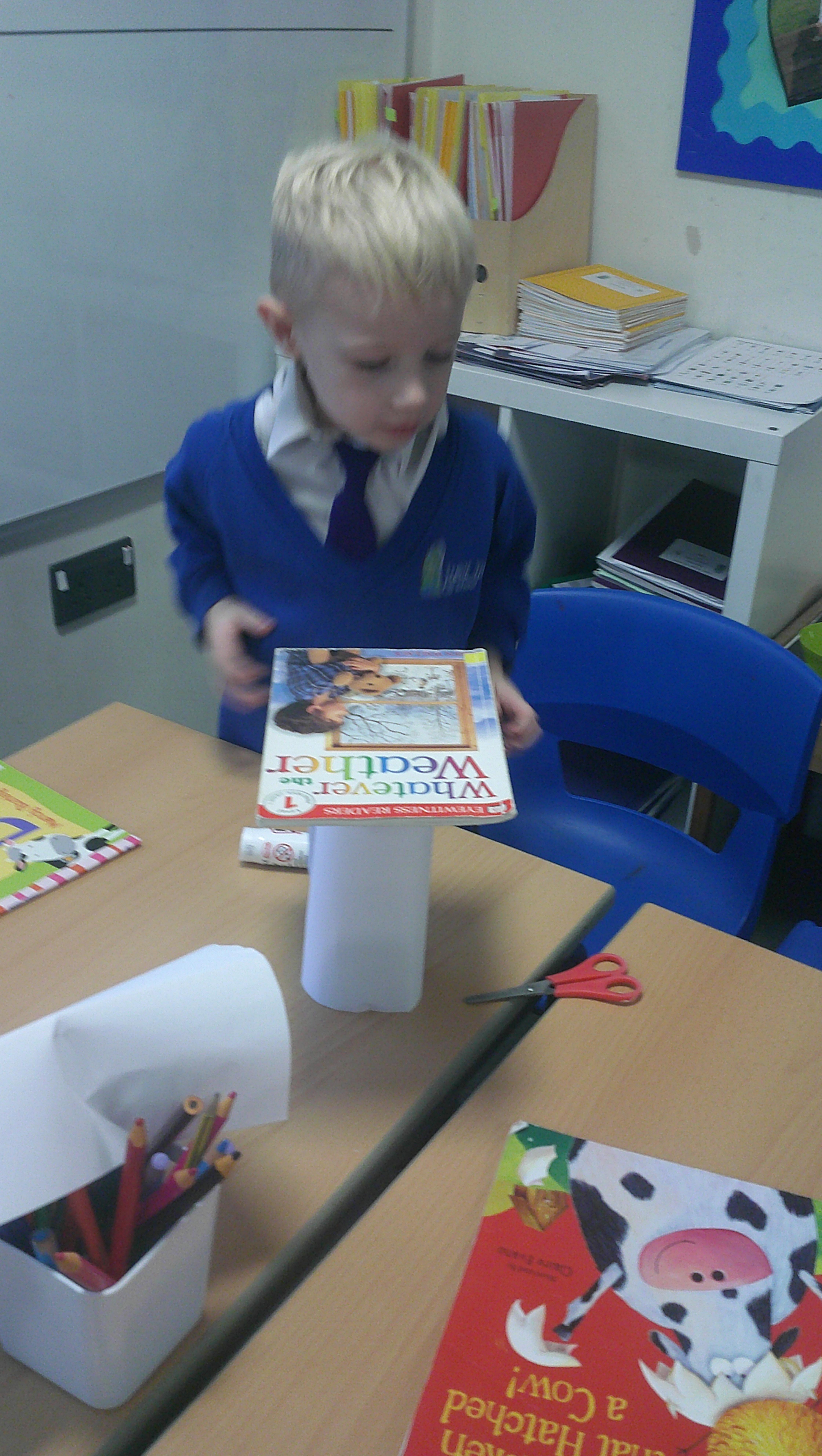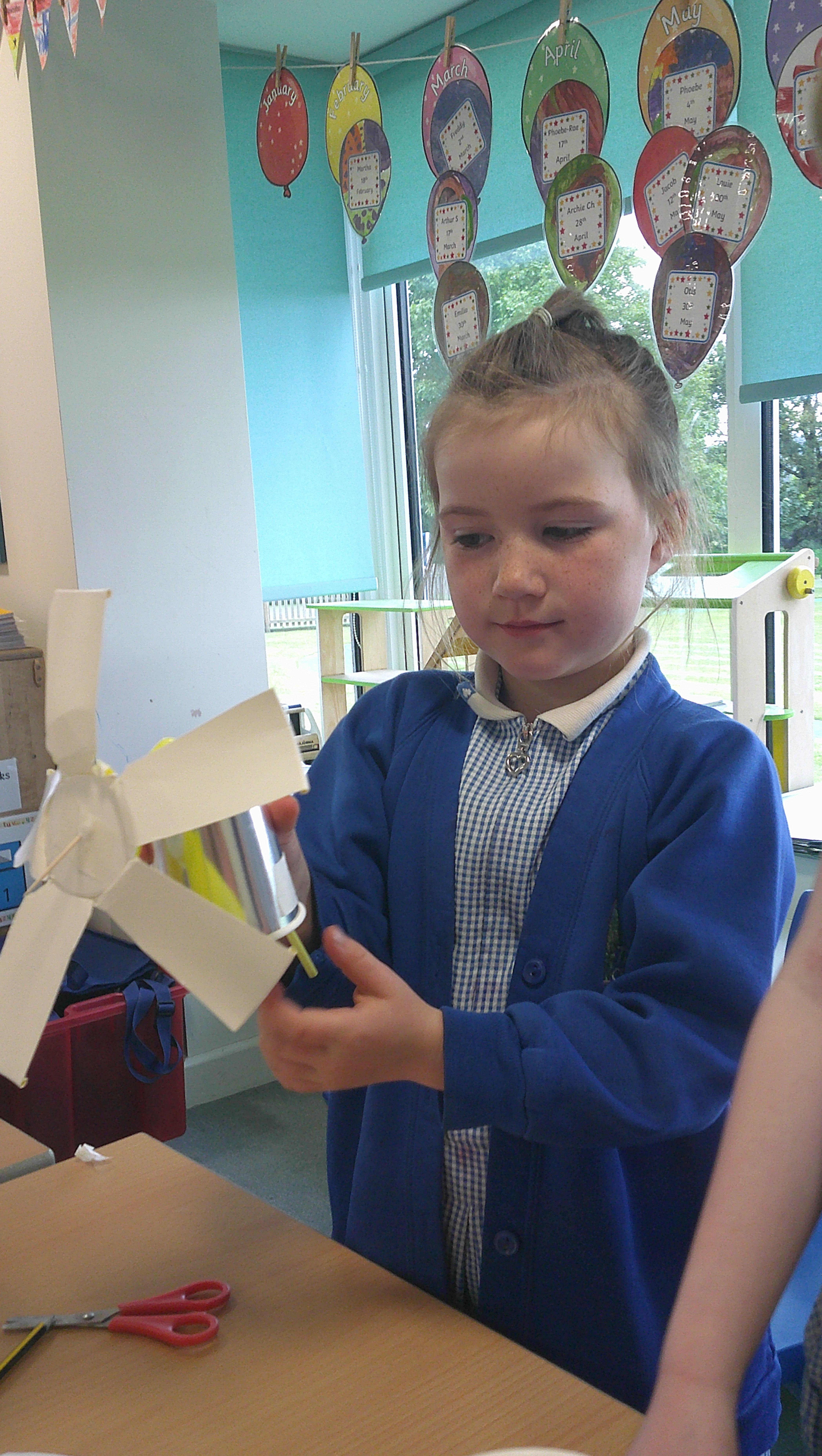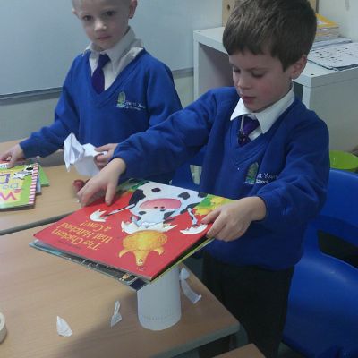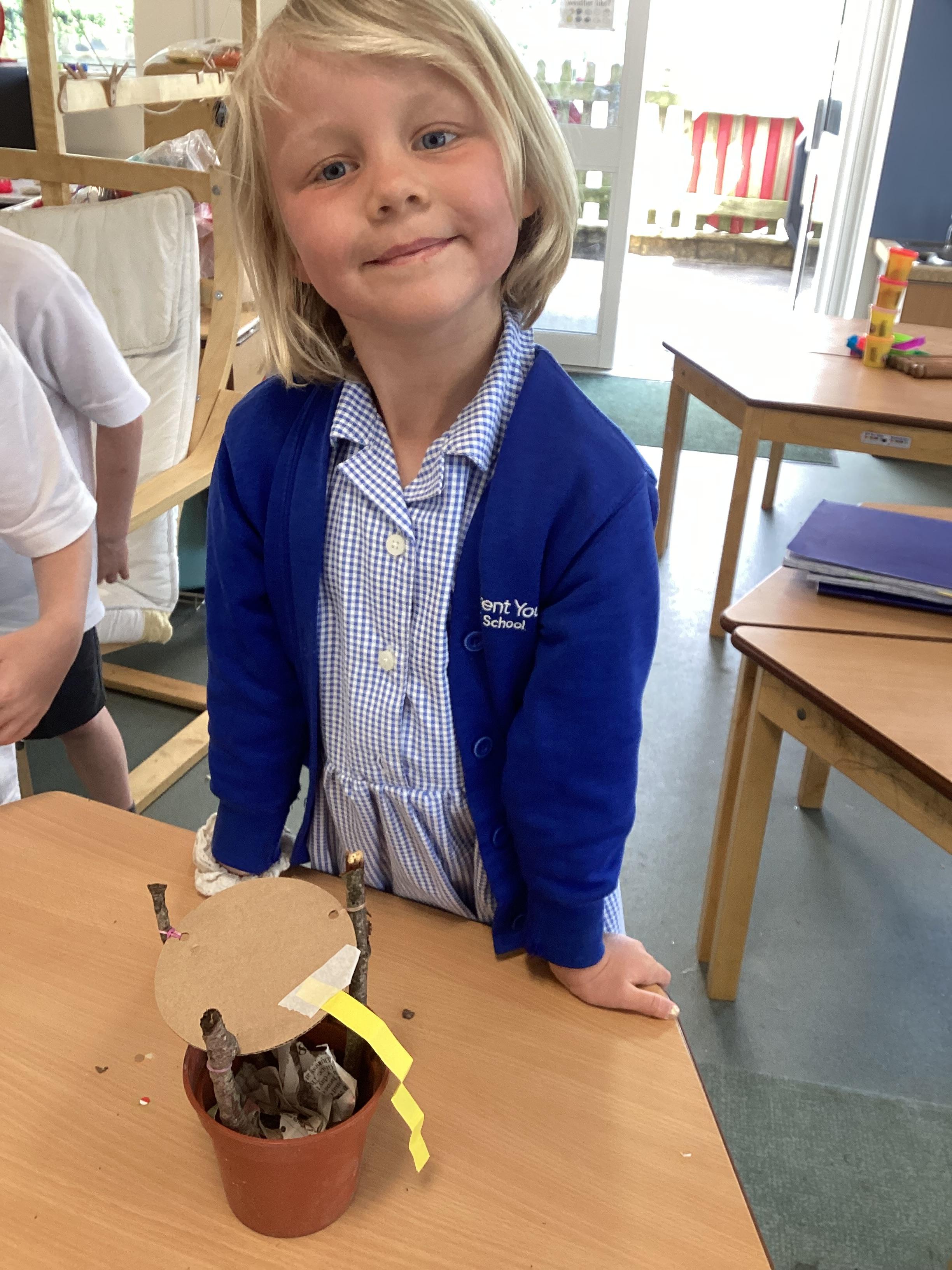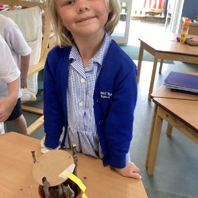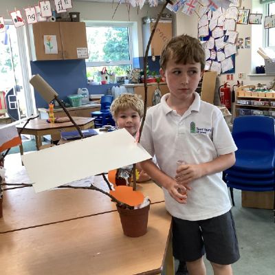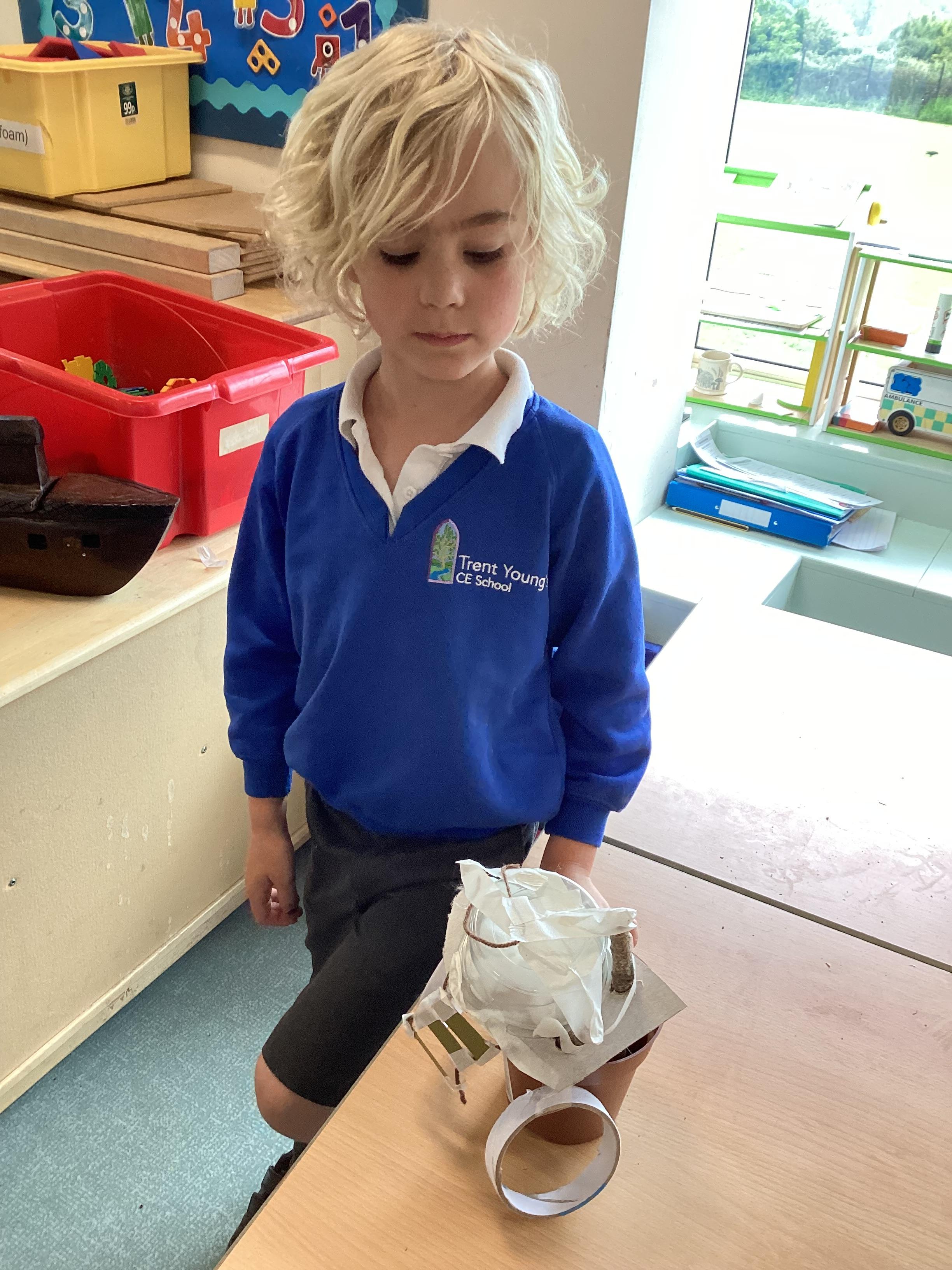 In our DT learning the children were inspired by the story 'The Little Red Hen' to create their own windmills. We investigated how to make a stable base for our freestanding structures, developed our cutting skills and applied our knowledge to join together parts of our structure.