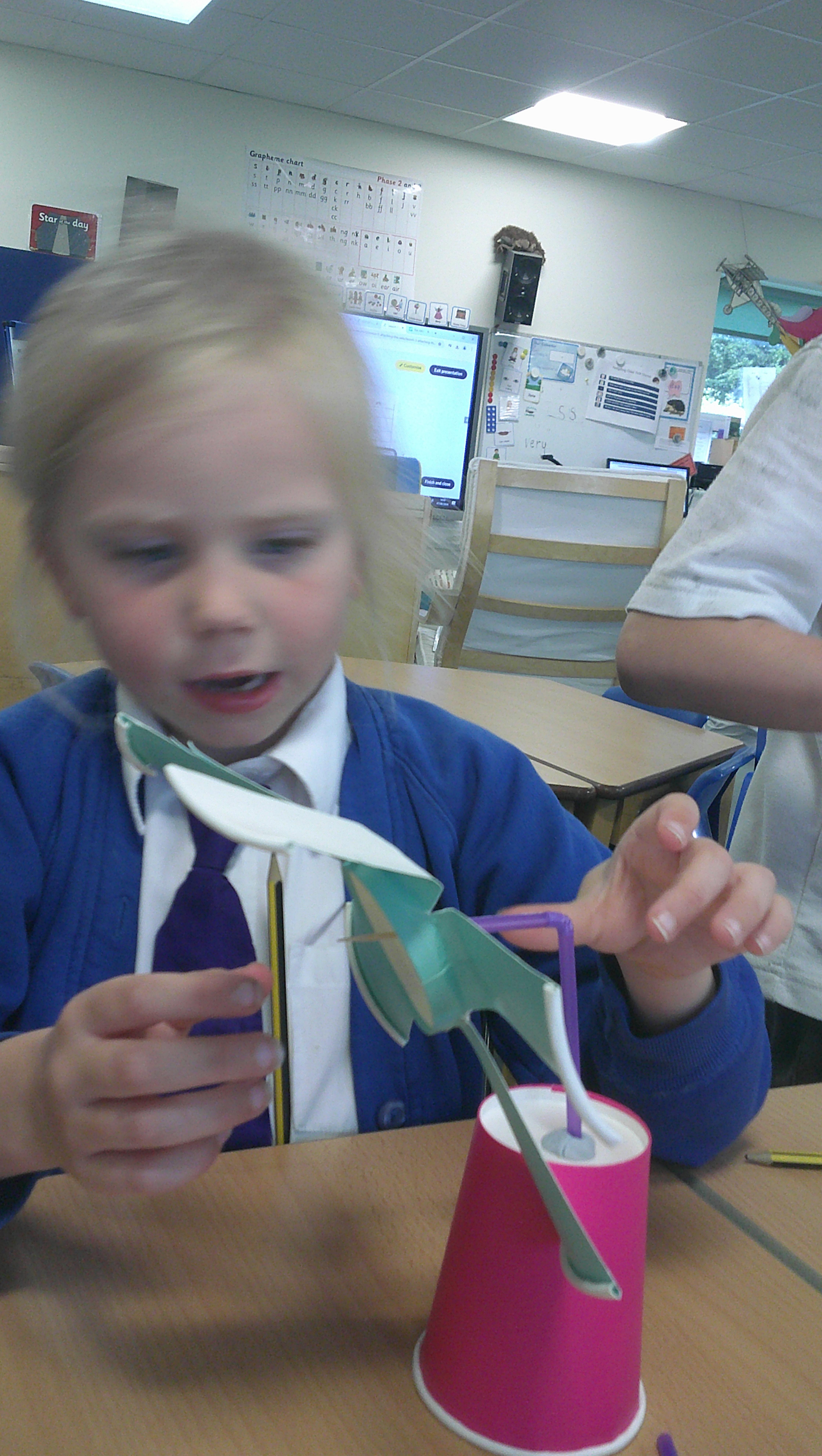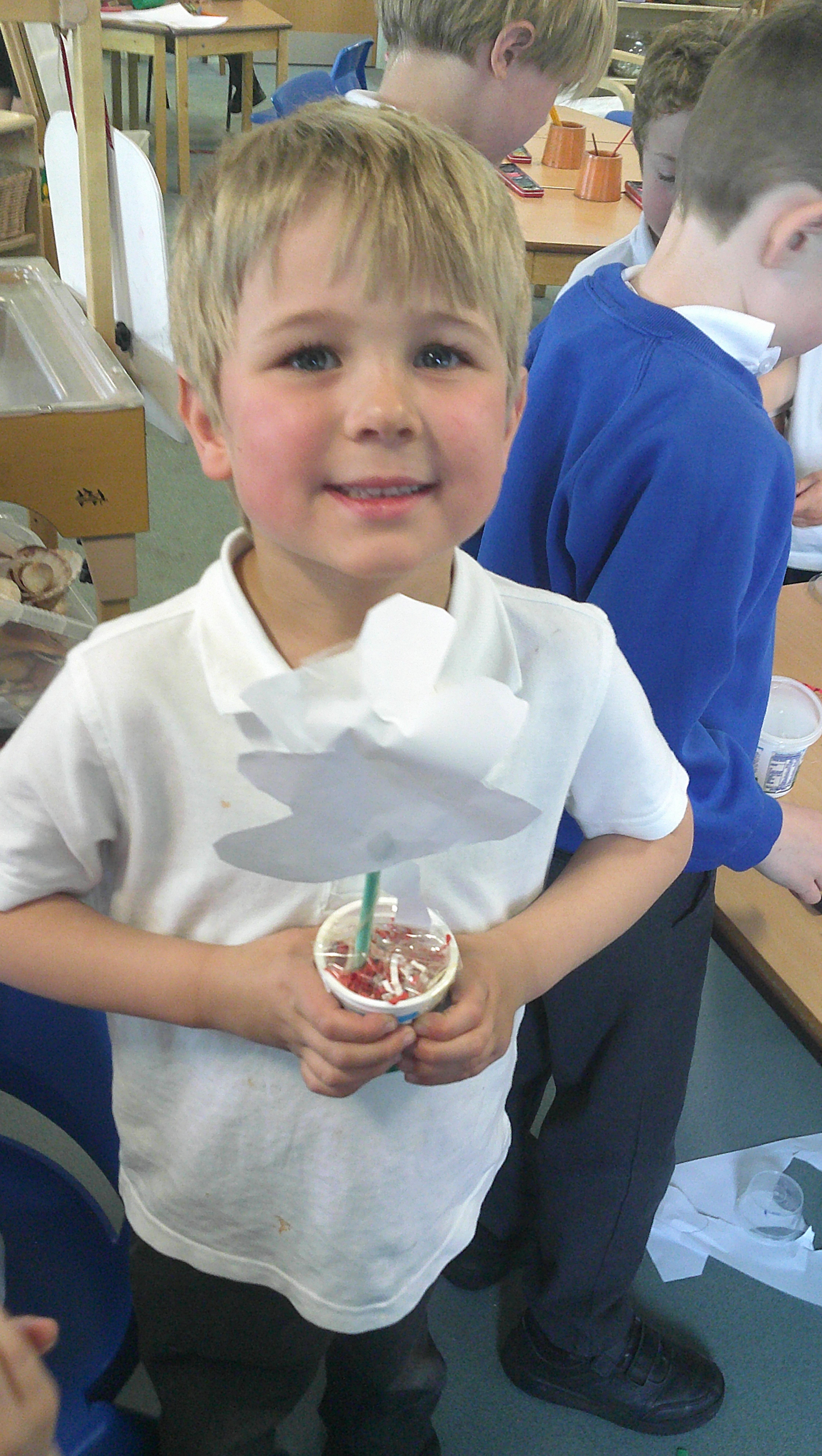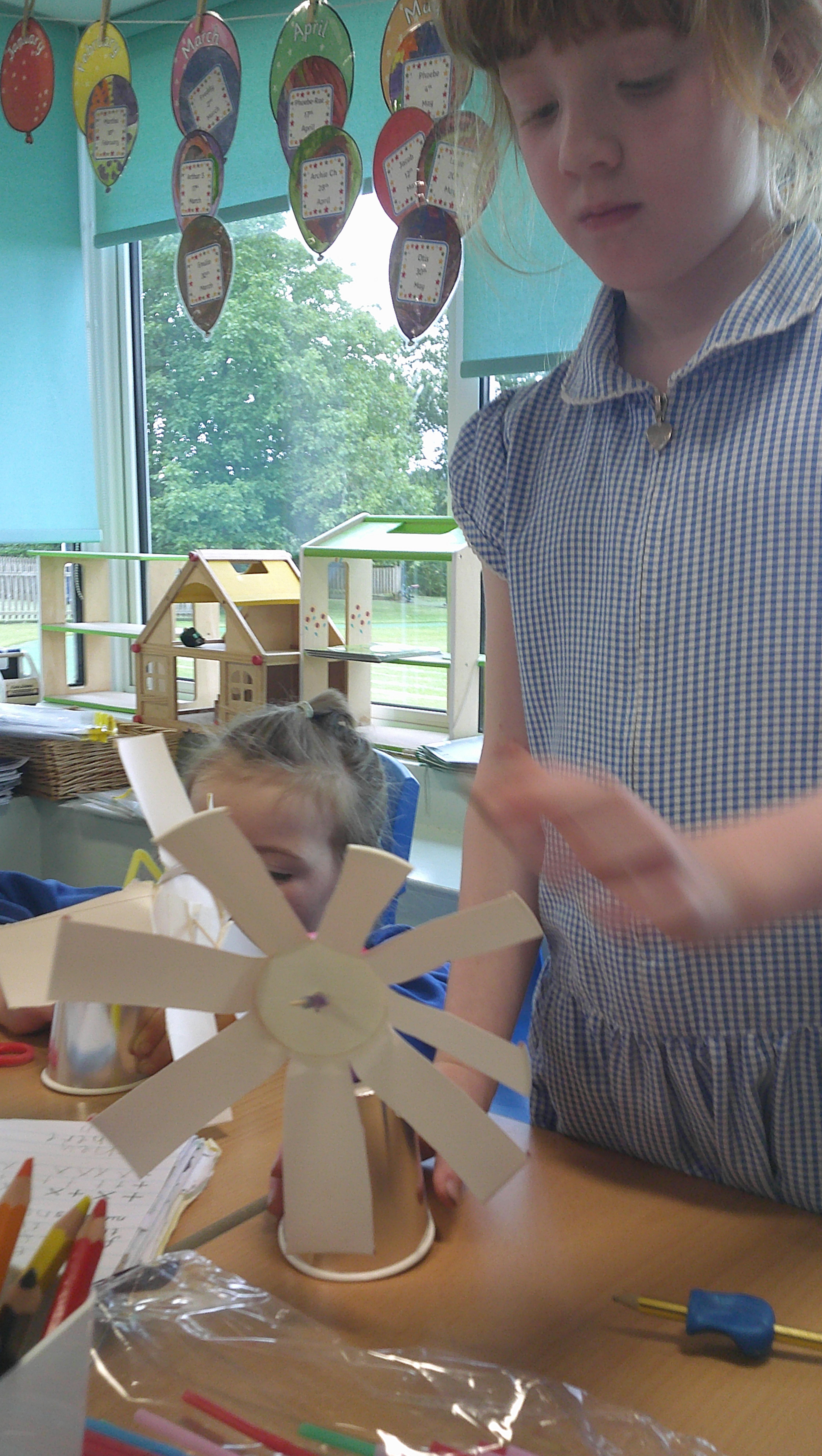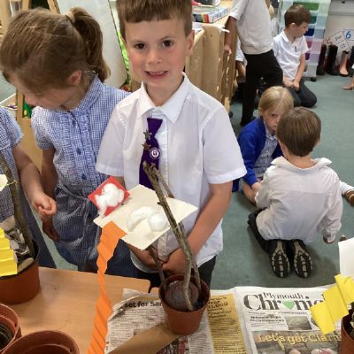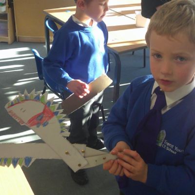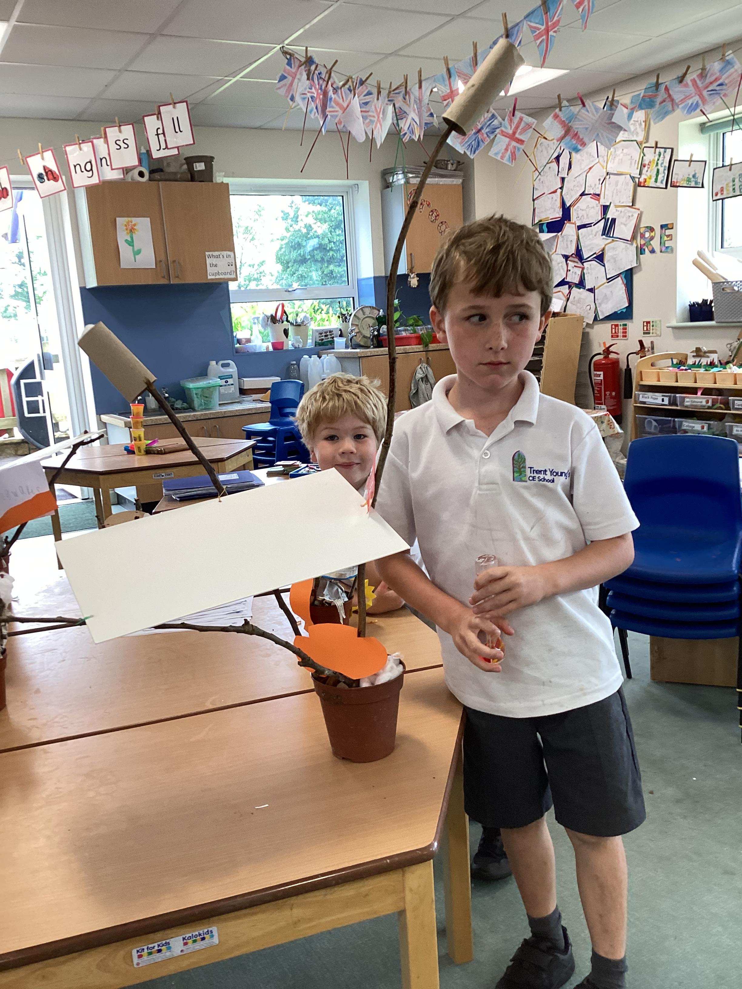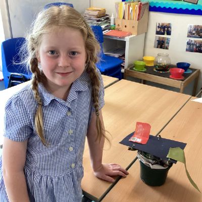 In our DT learning the children were inspired by the story 'The Little Red Hen' to create their own windmills. We investigated how to make a stable base for our freestanding structures, developed our cutting skills and applied our knowledge to join together parts of our structure.