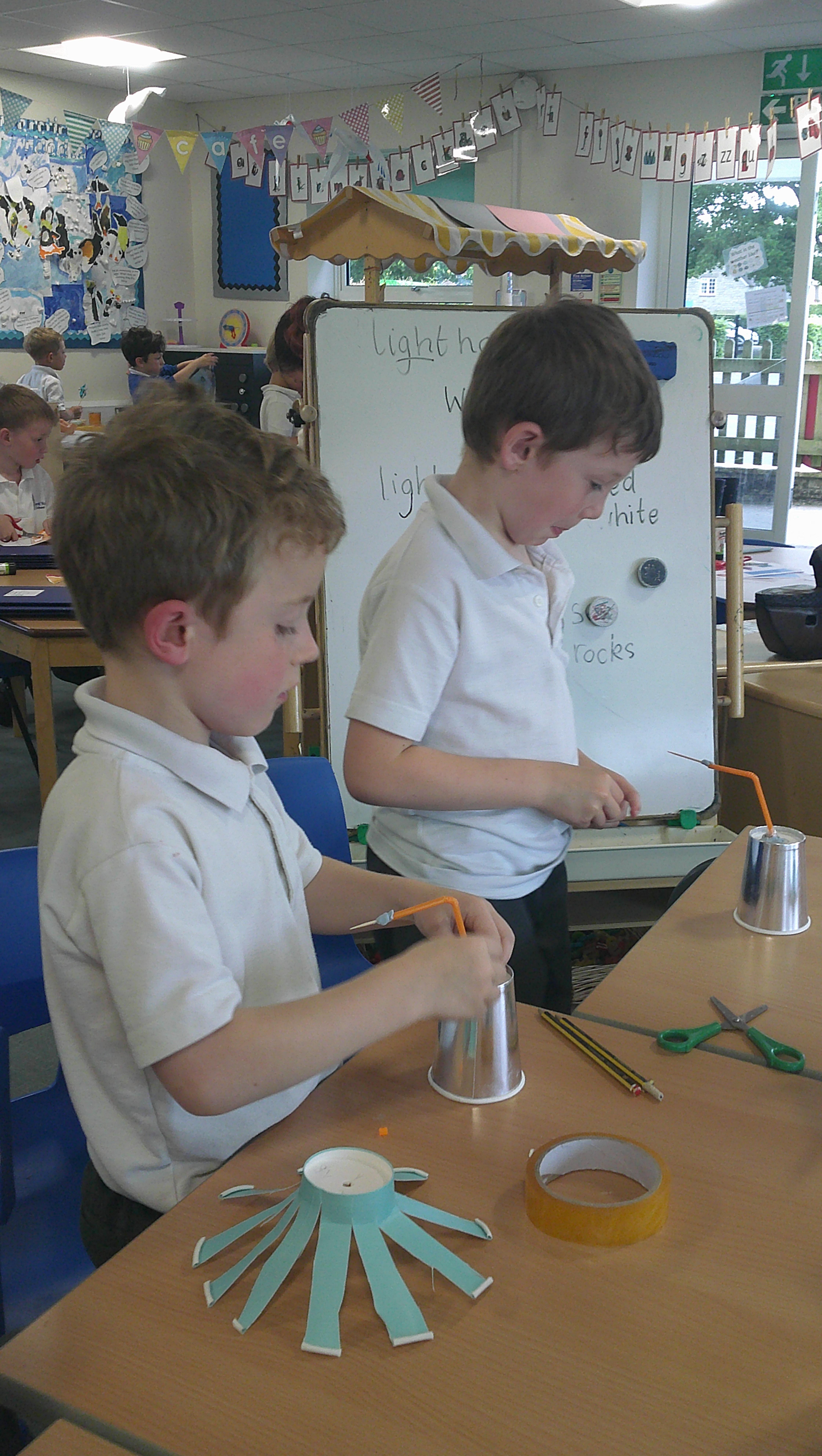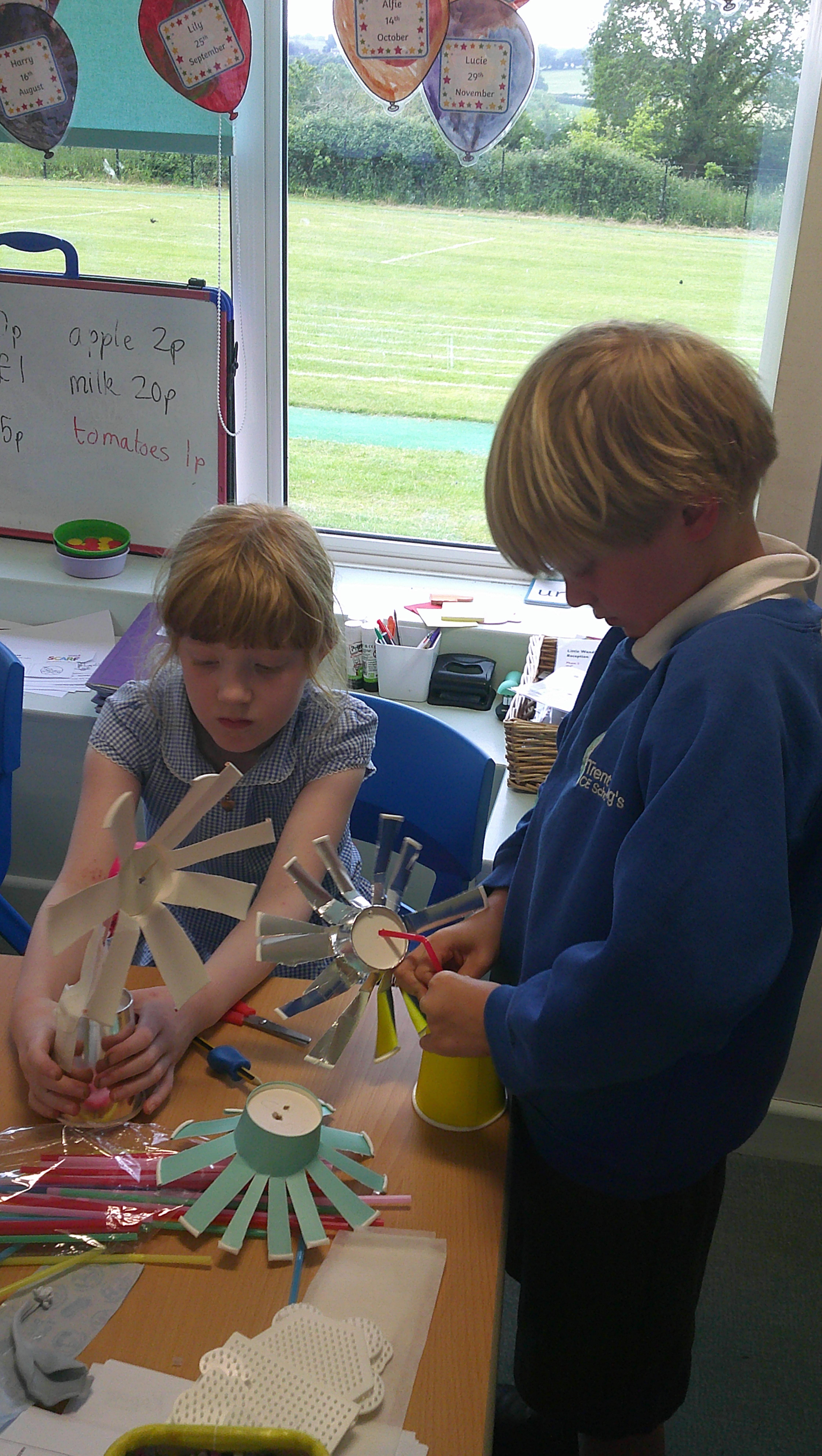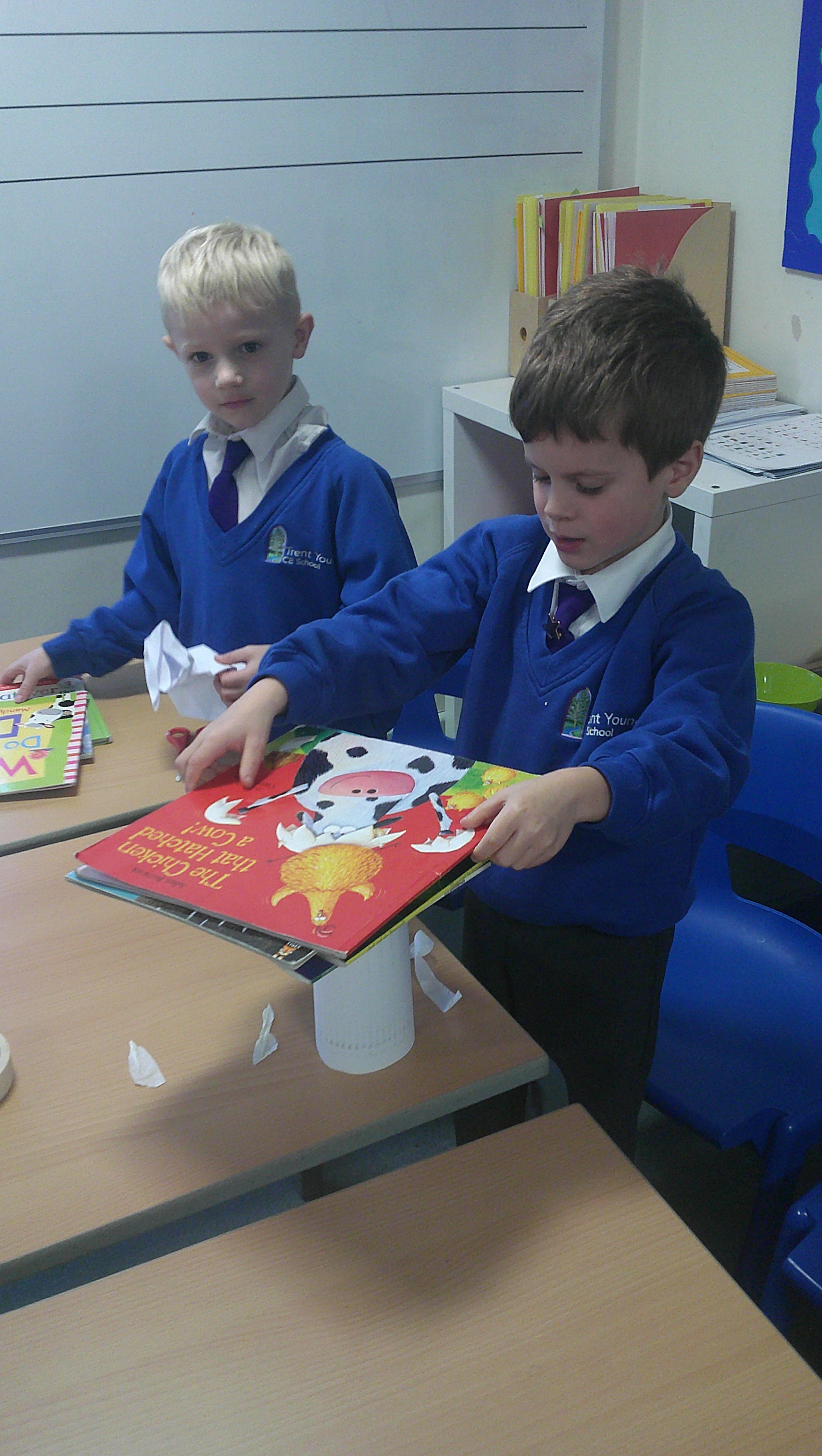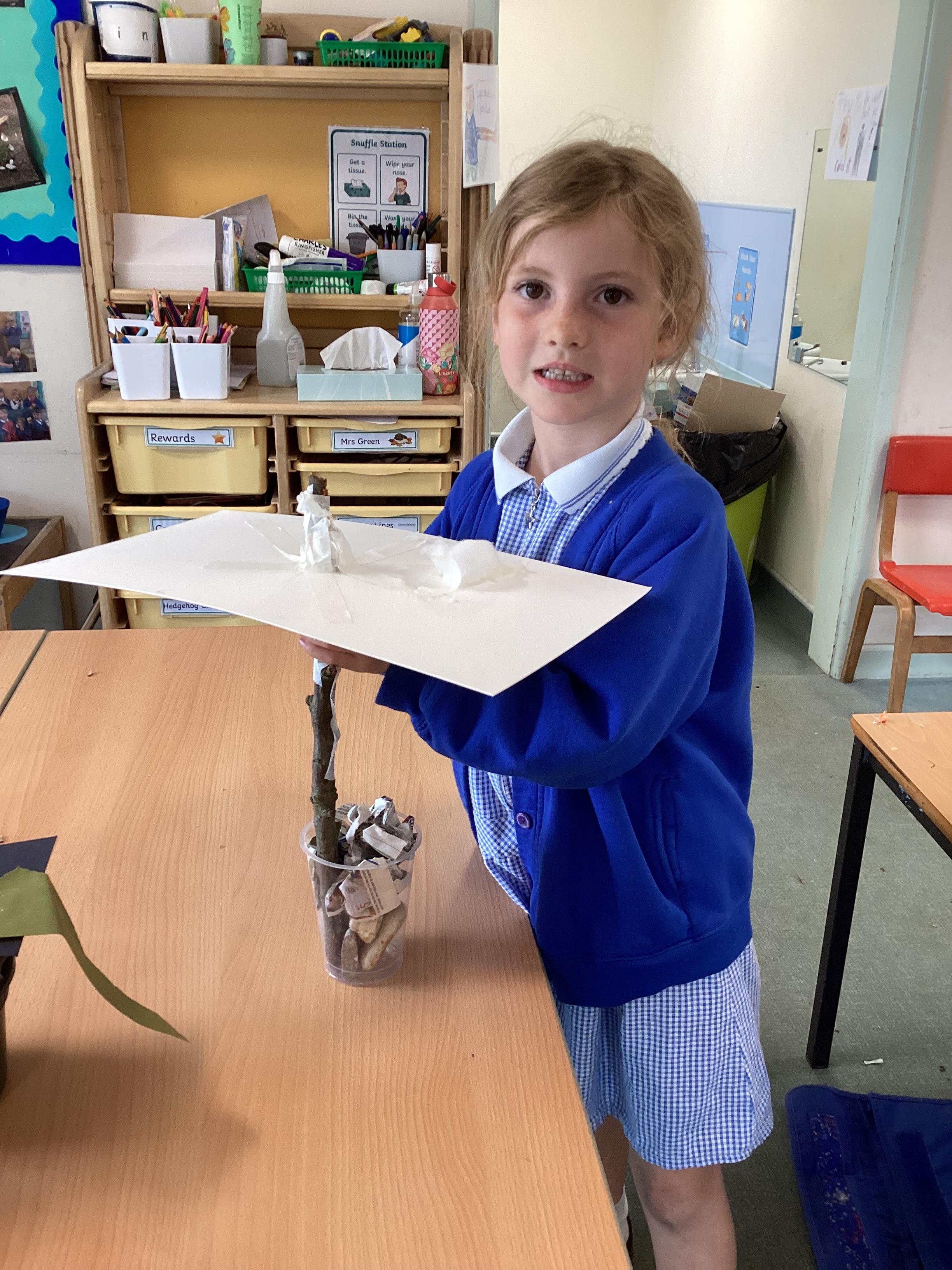 In our DT learning the children were inspired by the story 'The Little Red Hen' to create their own windmills. We investigated how to make a stable base for our freestanding structures, developed our cutting skills and applied our knowledge to join together parts of our structure.