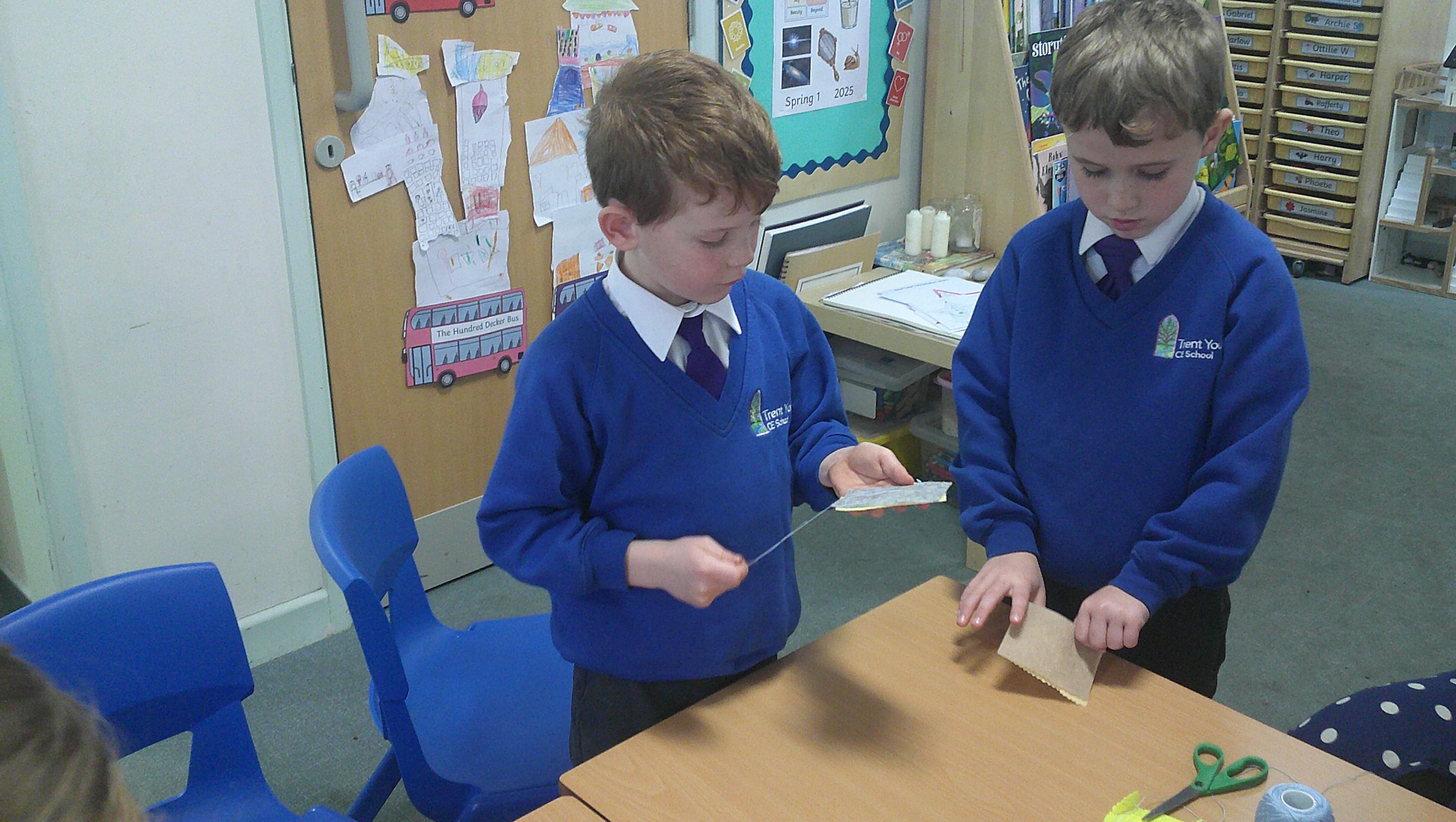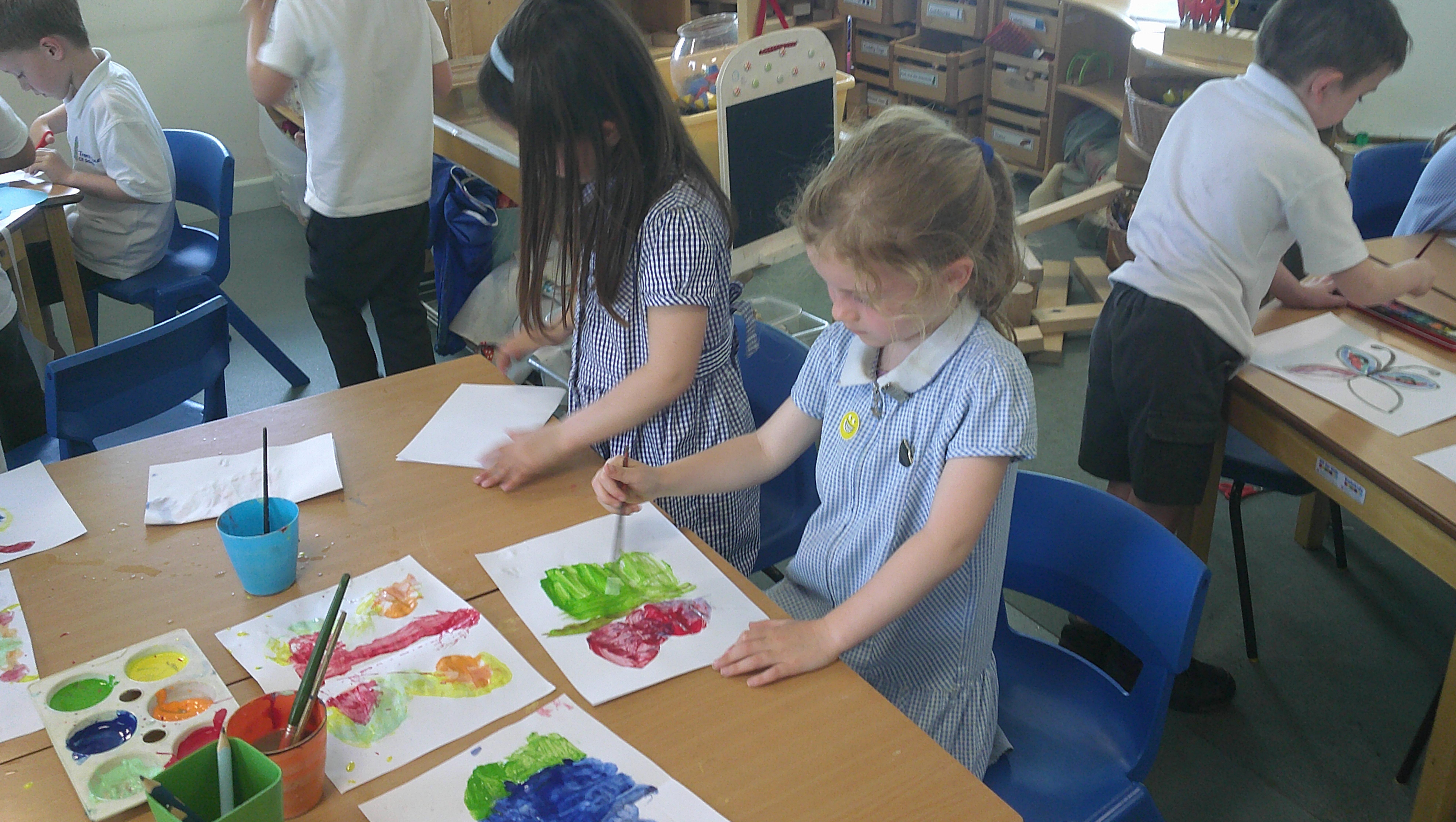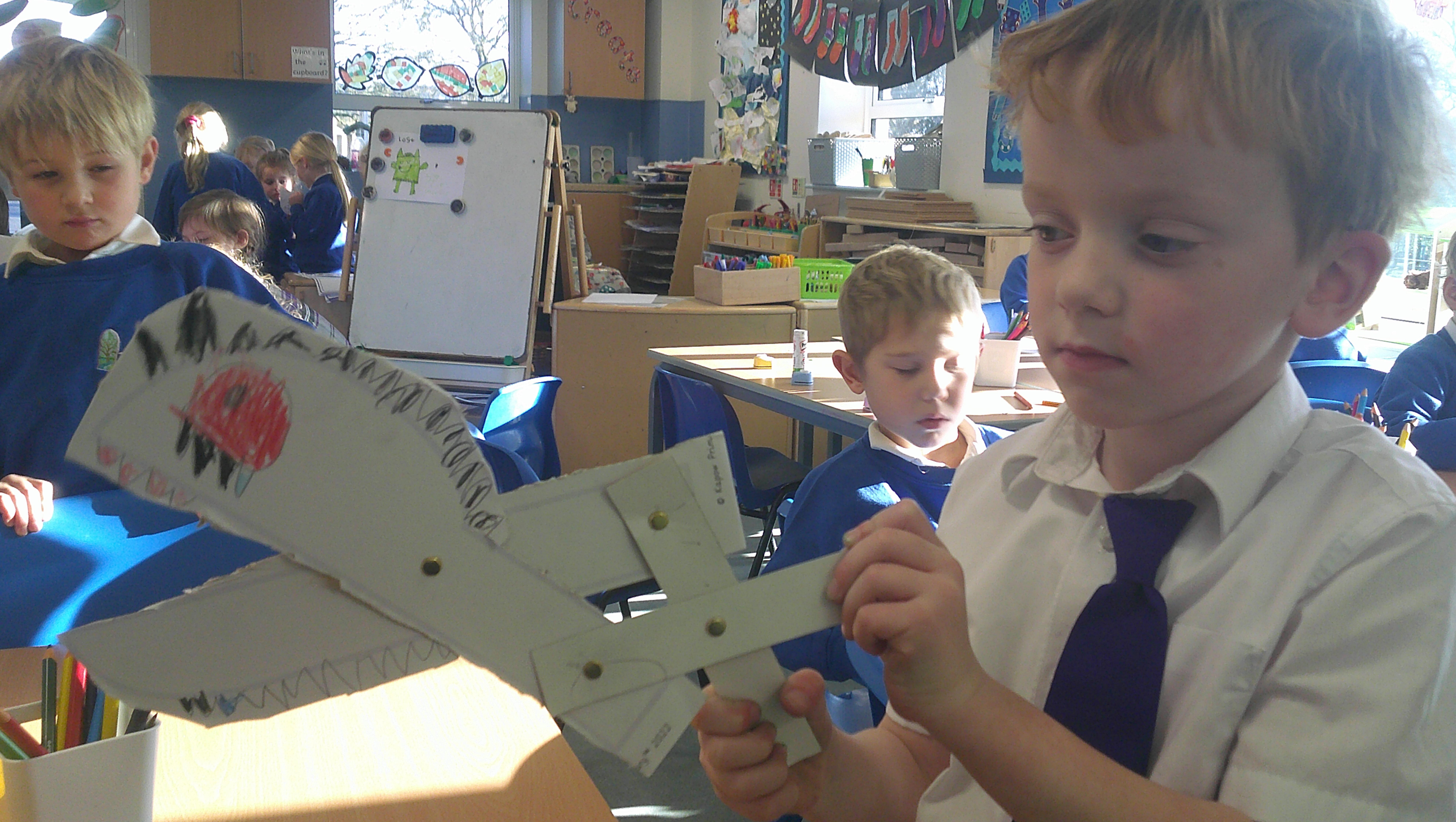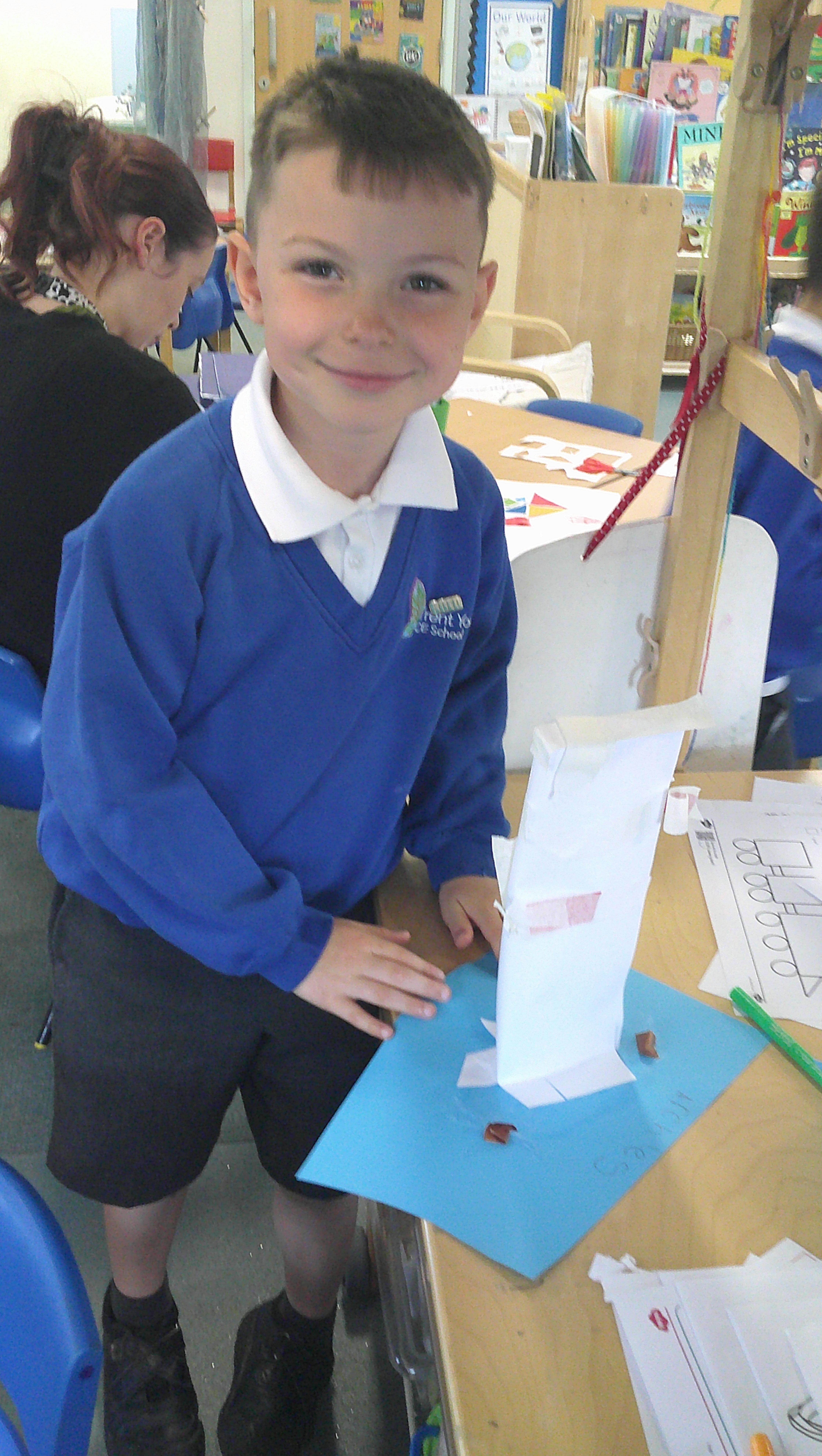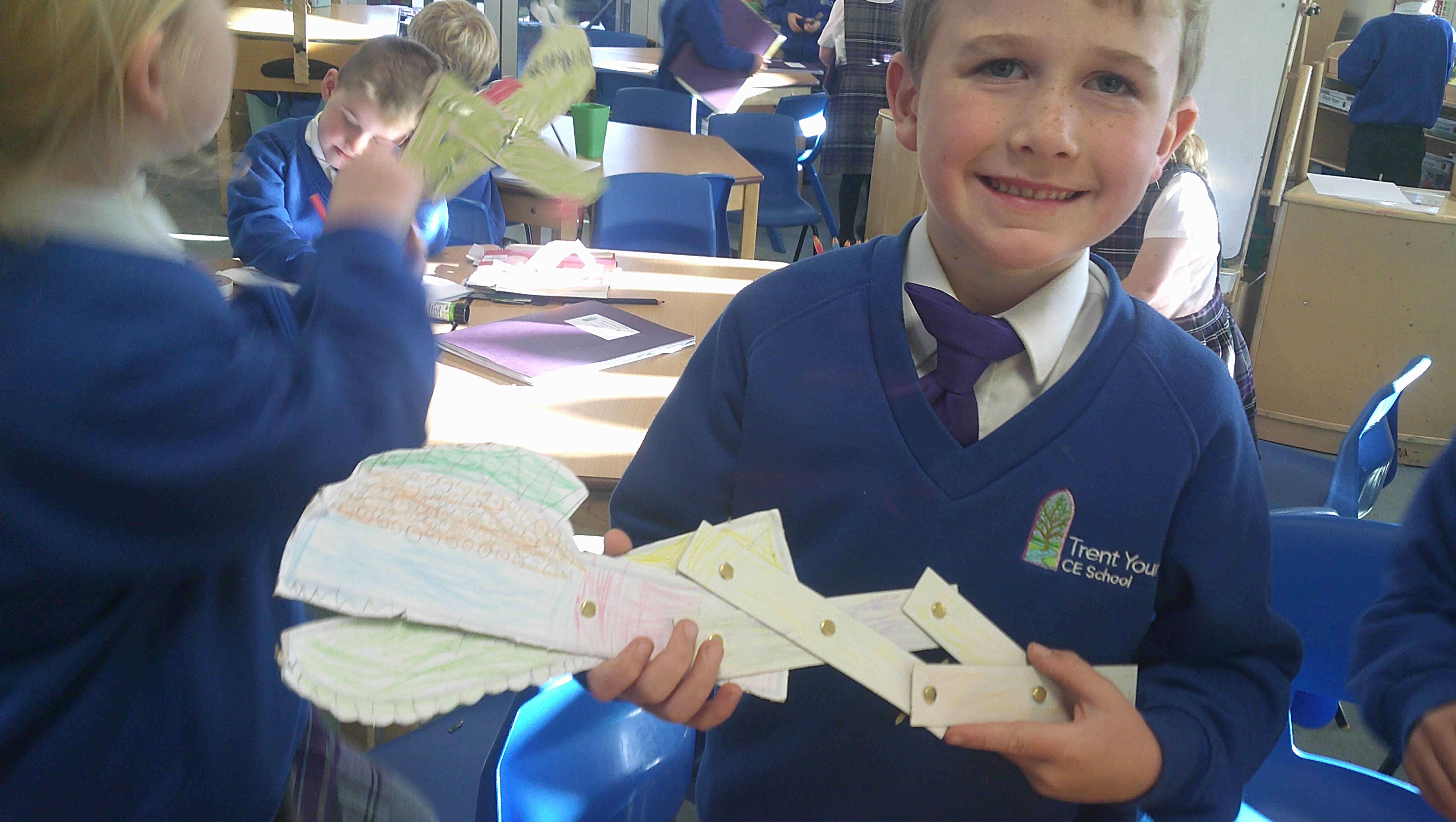 In our DT learning the children were inspired by the story 'The Little Red Hen' to create their own windmills. We investigated how to make a stable base for our freestanding structures, developed our cutting skills and applied our knowledge to join together parts of our structure.