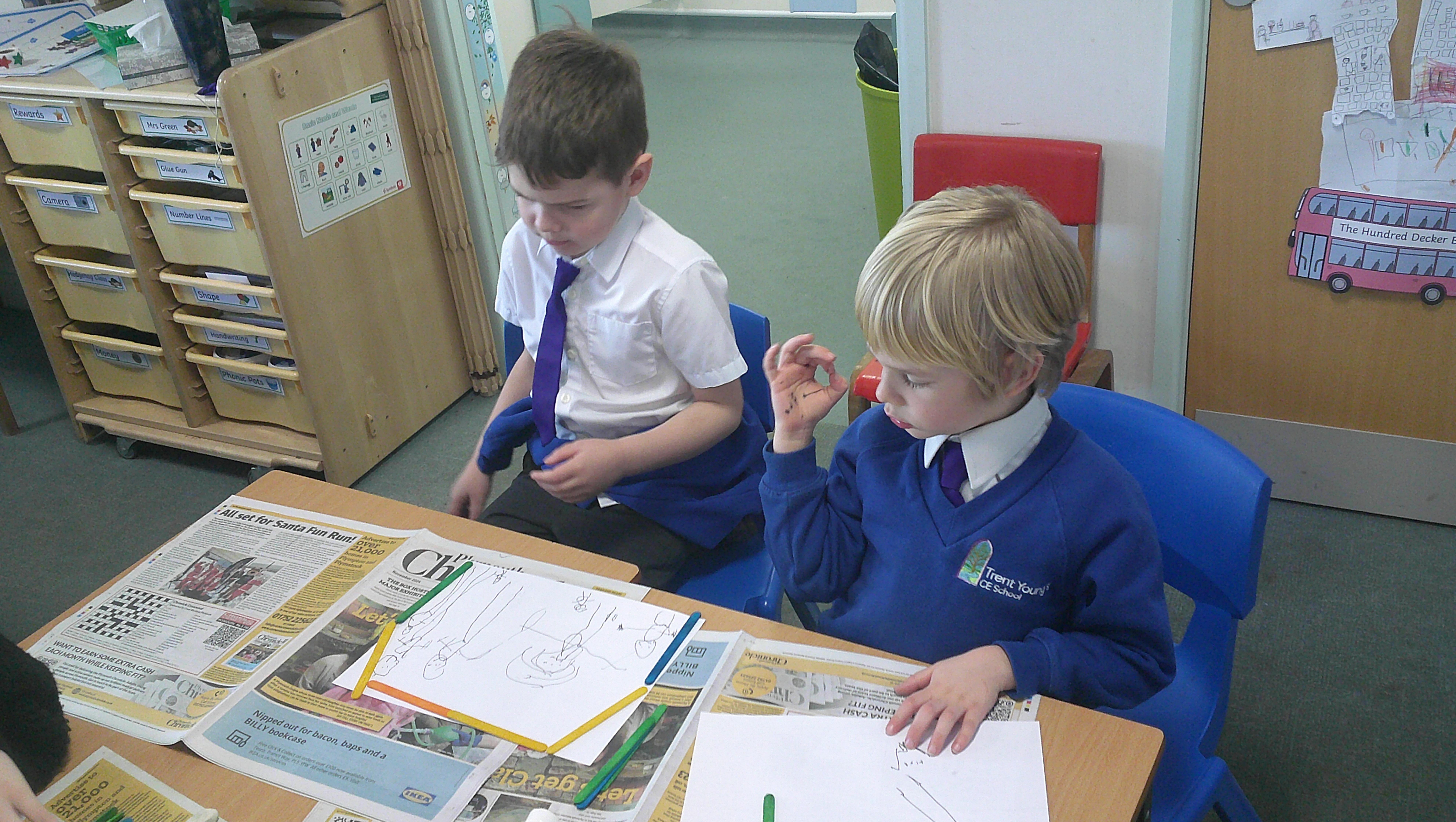 Due to the windy weather we stayed on our school site for Forest School today. The children collected and sorted sticks in to groups and then ordered their sticks by size. We explored our Forest School Area at school and made stick crafts - stickmen, wands, fishing rods and even a dog toy! Great creativity in all the wind.