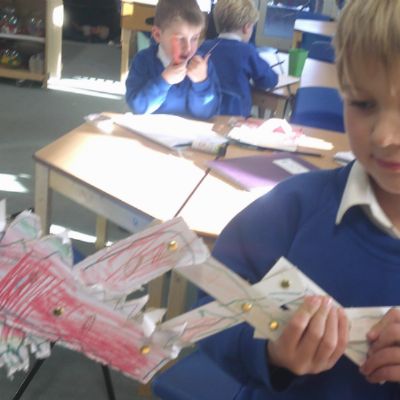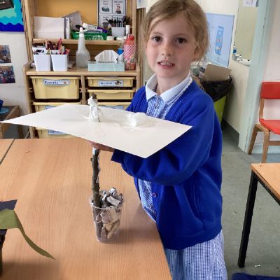 In our art learning we have been exploring paper sculpture. The children explored drawing birds and feathers using a variety of media. We then found ways to change paper to create texture by tearing, scrunching, cutting and folding. As a final piece the children applied the things they have learned to create free standing bird sculptures.