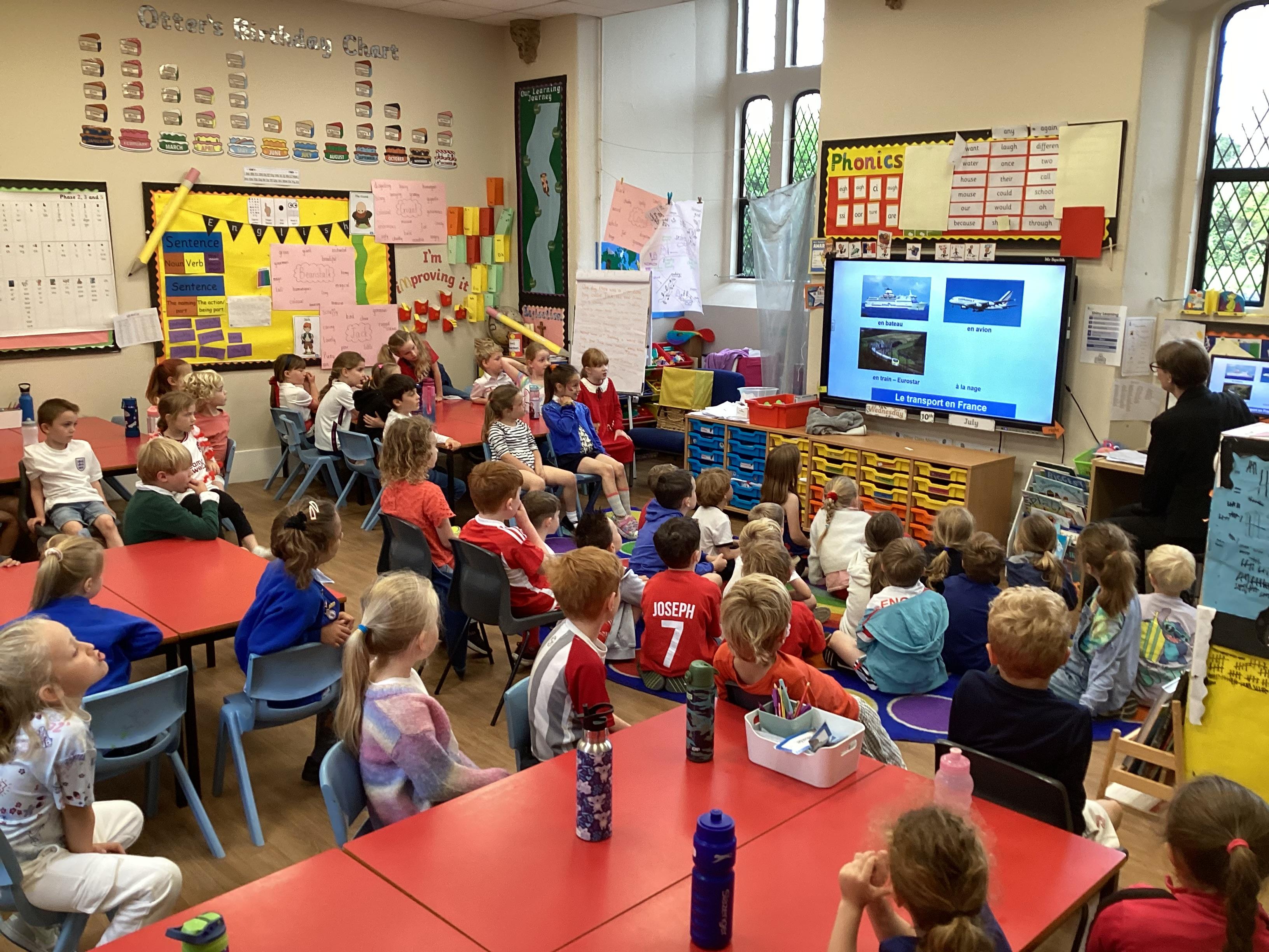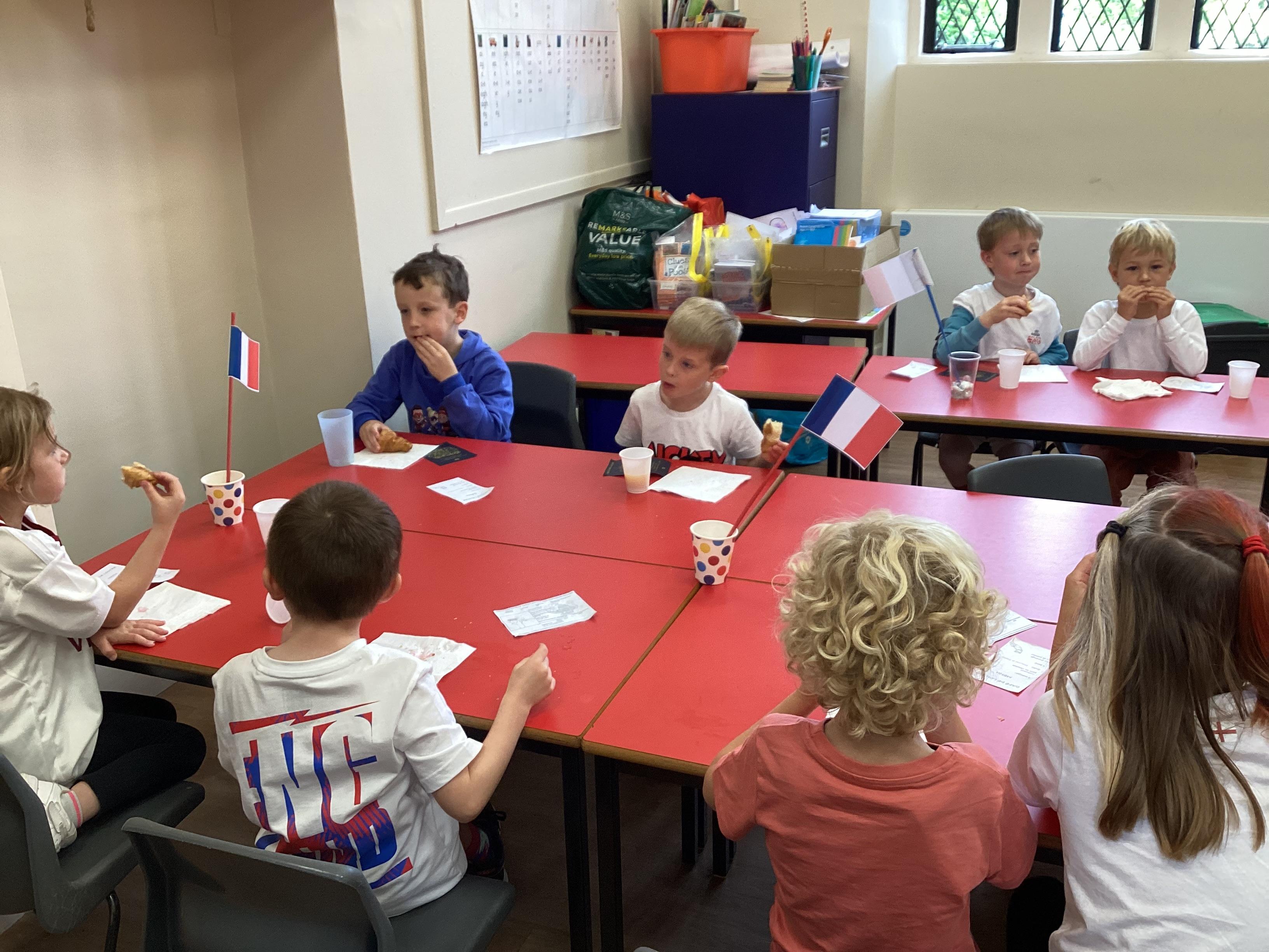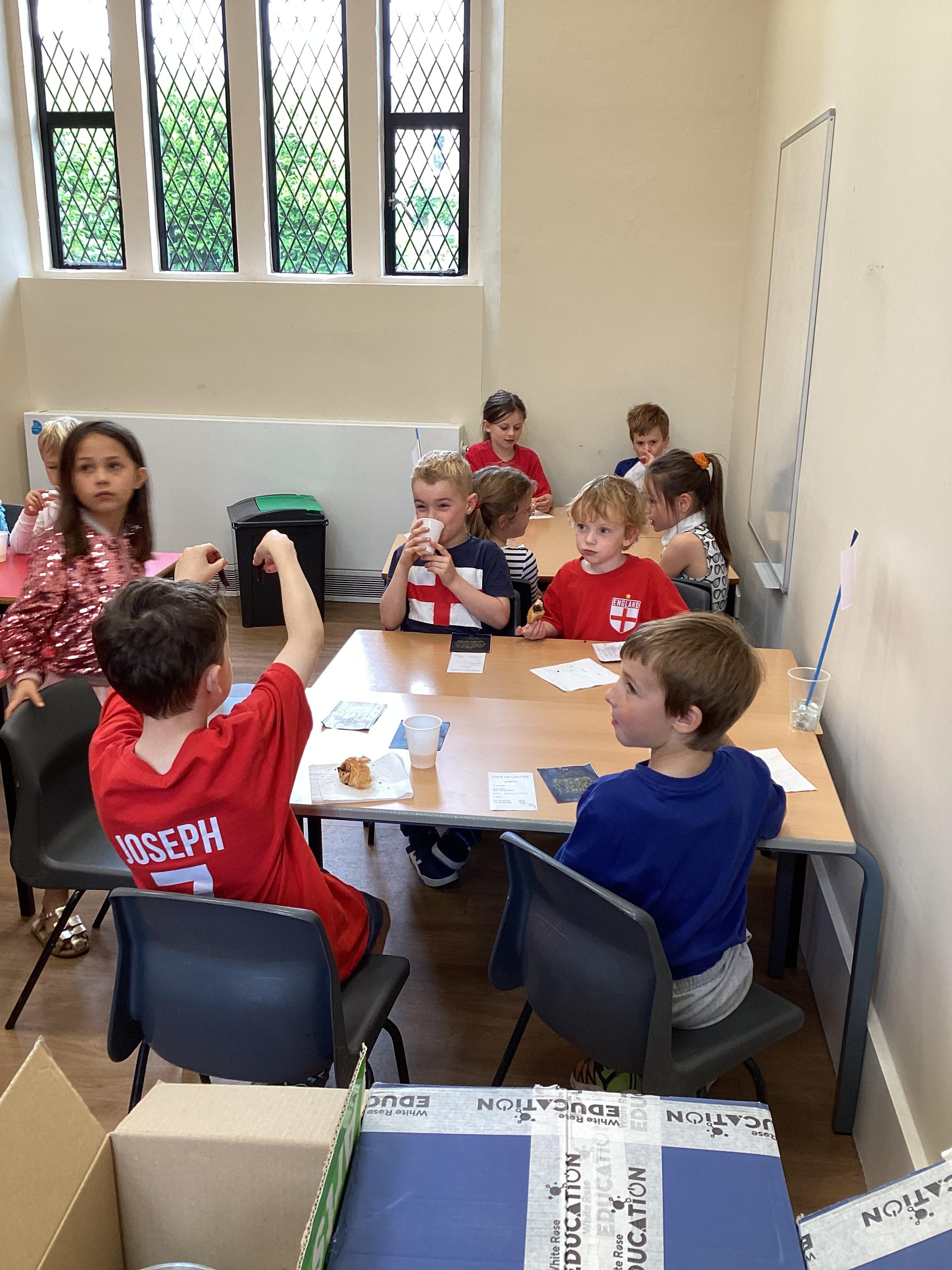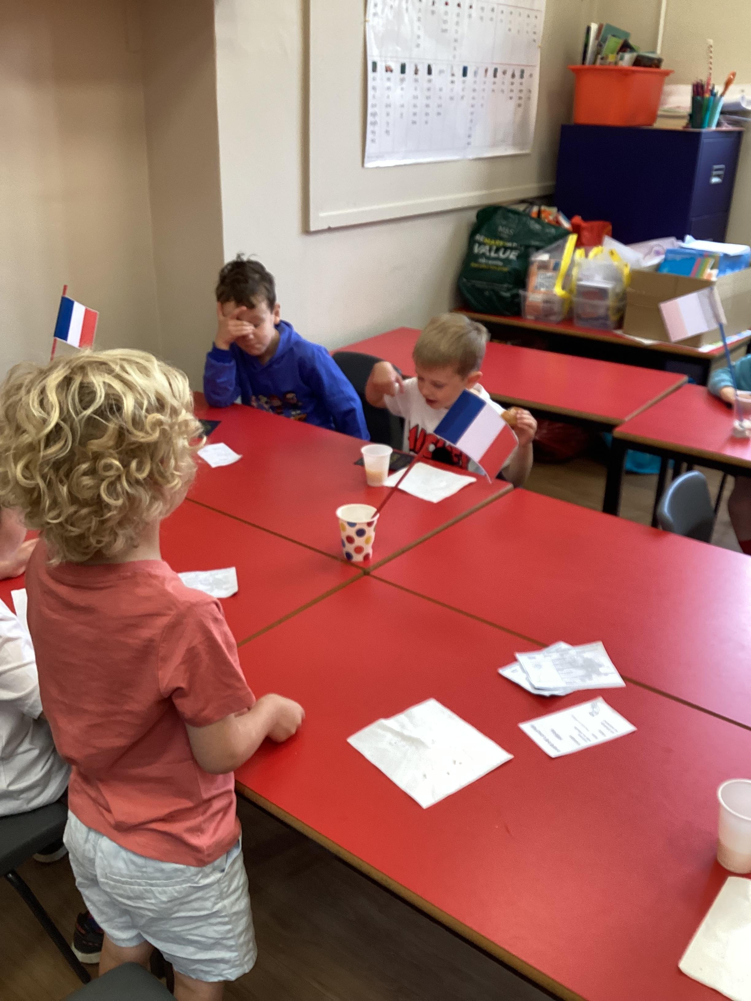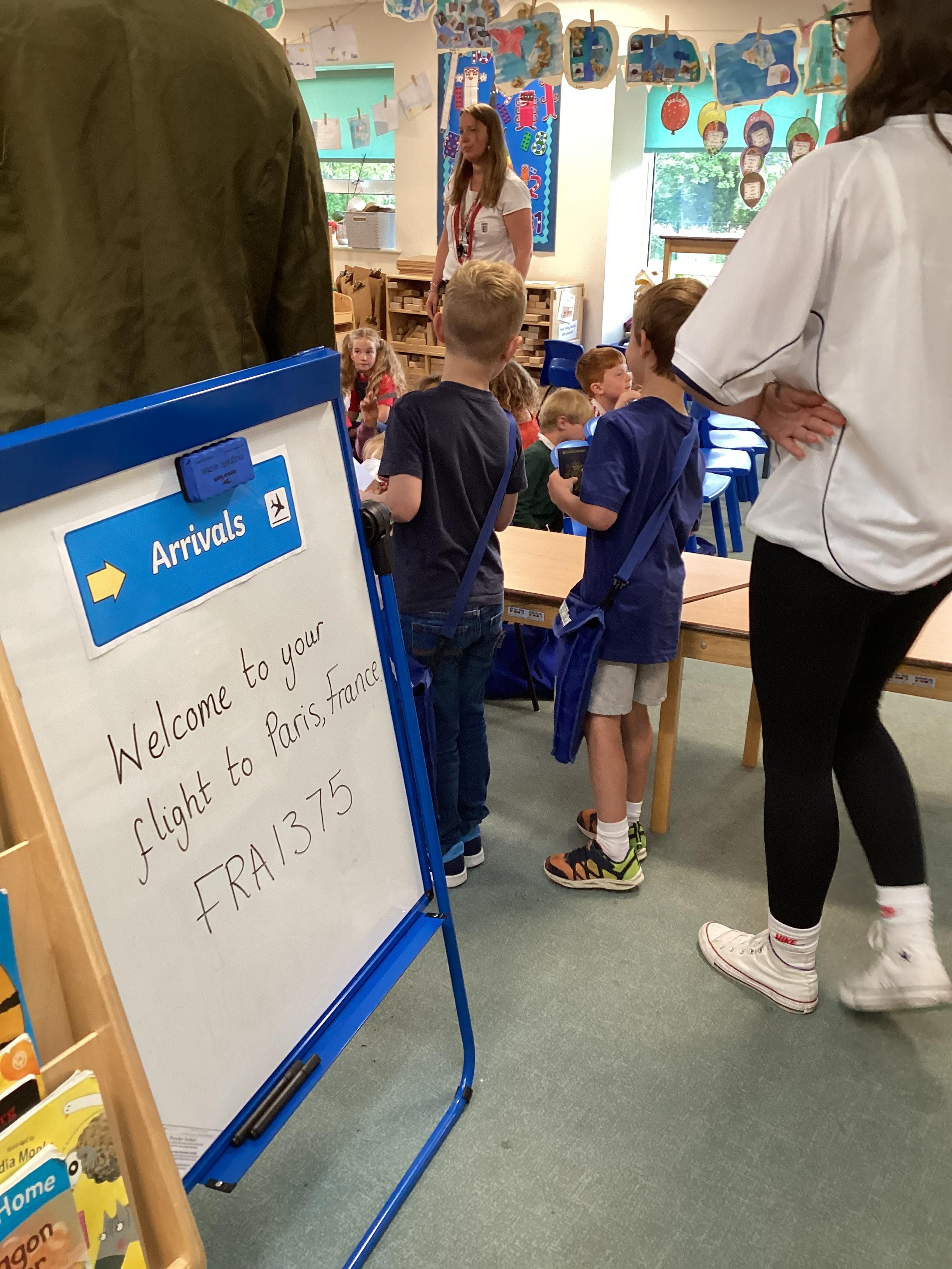 We finished our French learning by taking a plane to France! Our day started by making our passports and boarding passes so we could go on the plane. Mrs Jones checked our passports and boarding passes before we got on the plane. Mr Squibb captained and flew the plane with Madame Ferguson as co-pilot. Once, we arrived in France we had our passports checked by Miss Ackerman and then we went to the French Cafe. We were able to use our French skills to order a drink and snack from Mrs Green and Miss Partridge's Cafe - what a great French Day!!