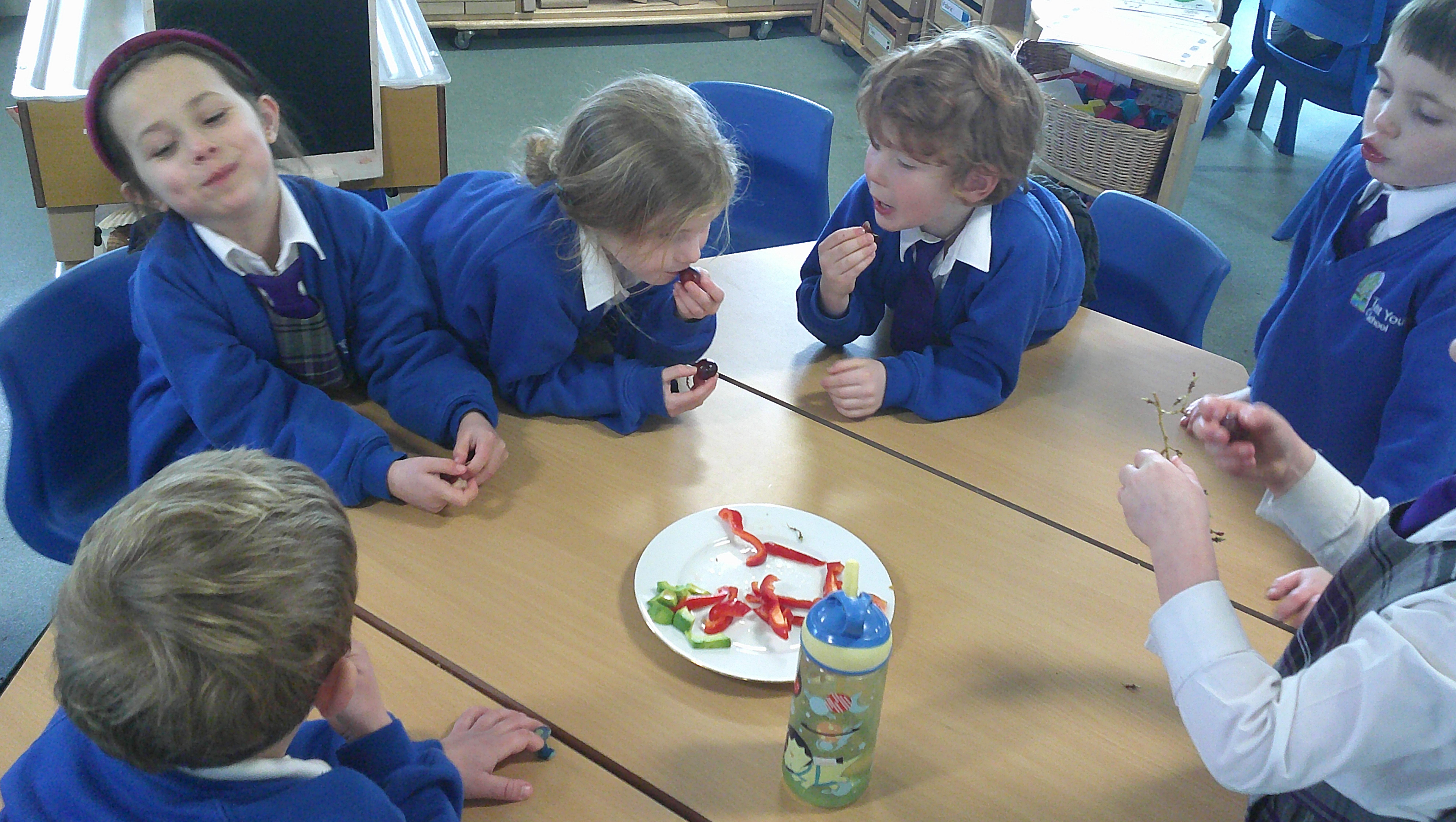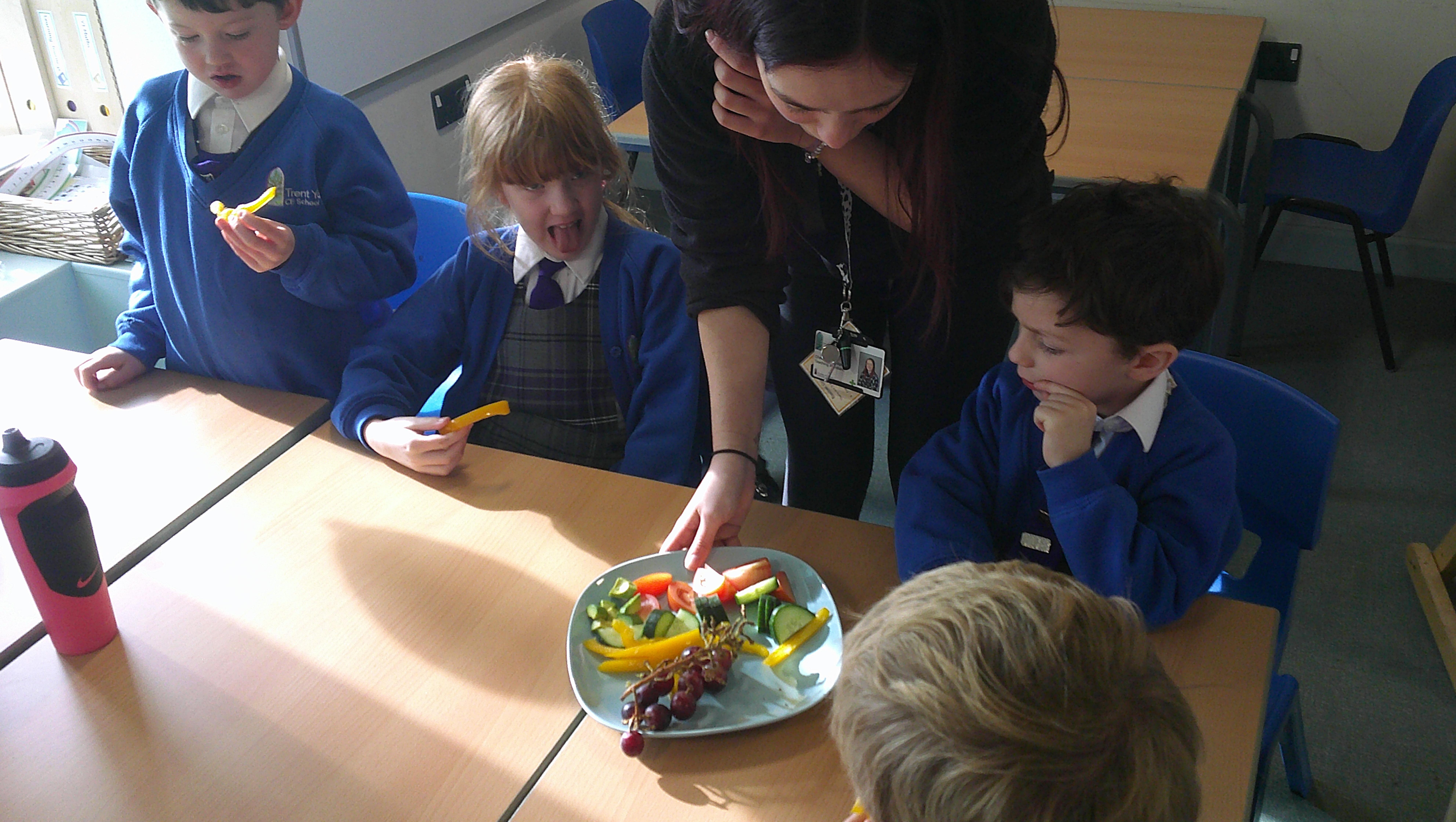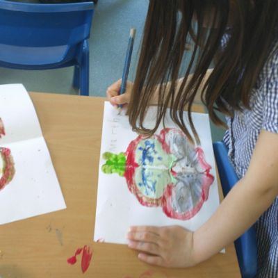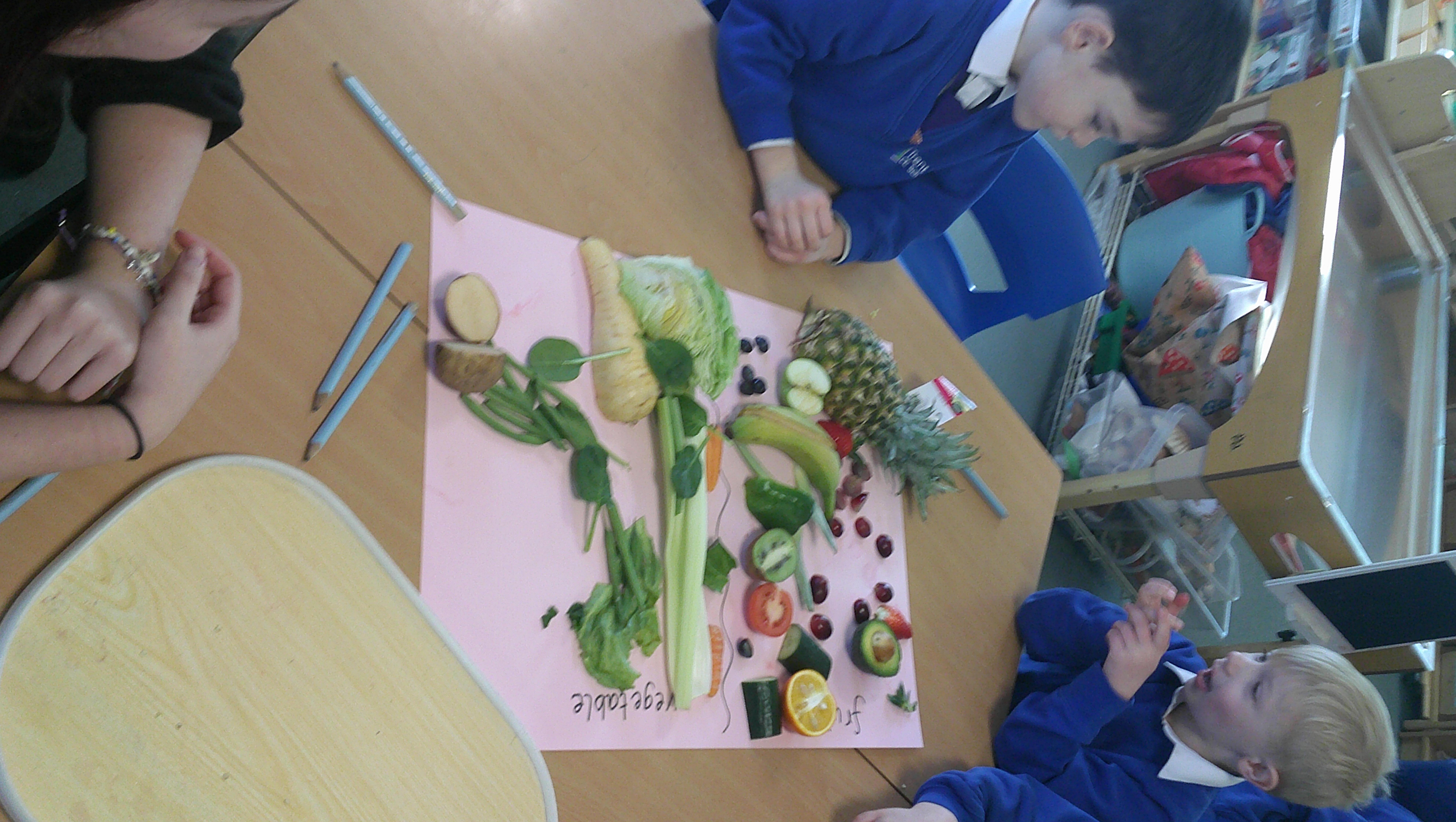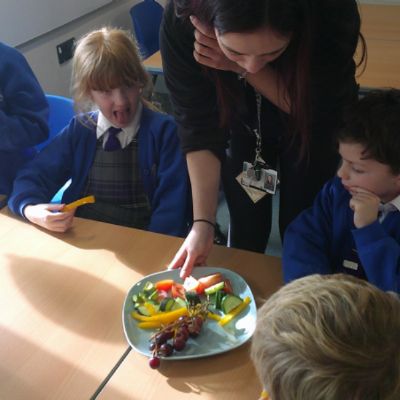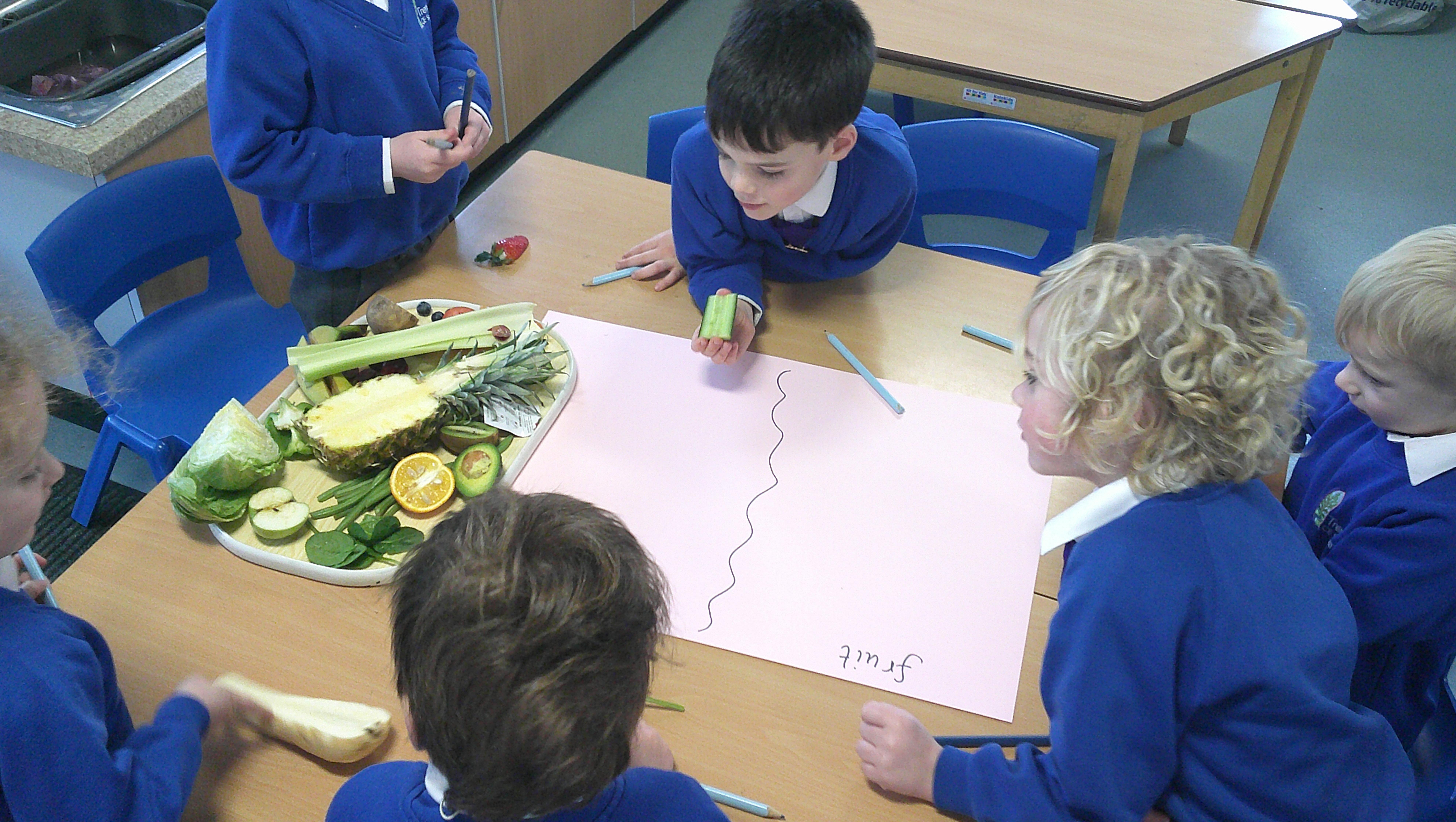 We started our DT food and nutrition unit by exploring fruit and vegetables. We started by naming and describing a wide range of fruit and vegetables. The children gave suggestions as to how we could sort the fruit and vegetables. We then used our knowledge that fruits contains the seed, so we had a careful look to see if we could see the seeds. We finished the session with a food tasting and tasted the fruits that often get mistaken for vegetables (peppers, avocado, cucumber and tomato).