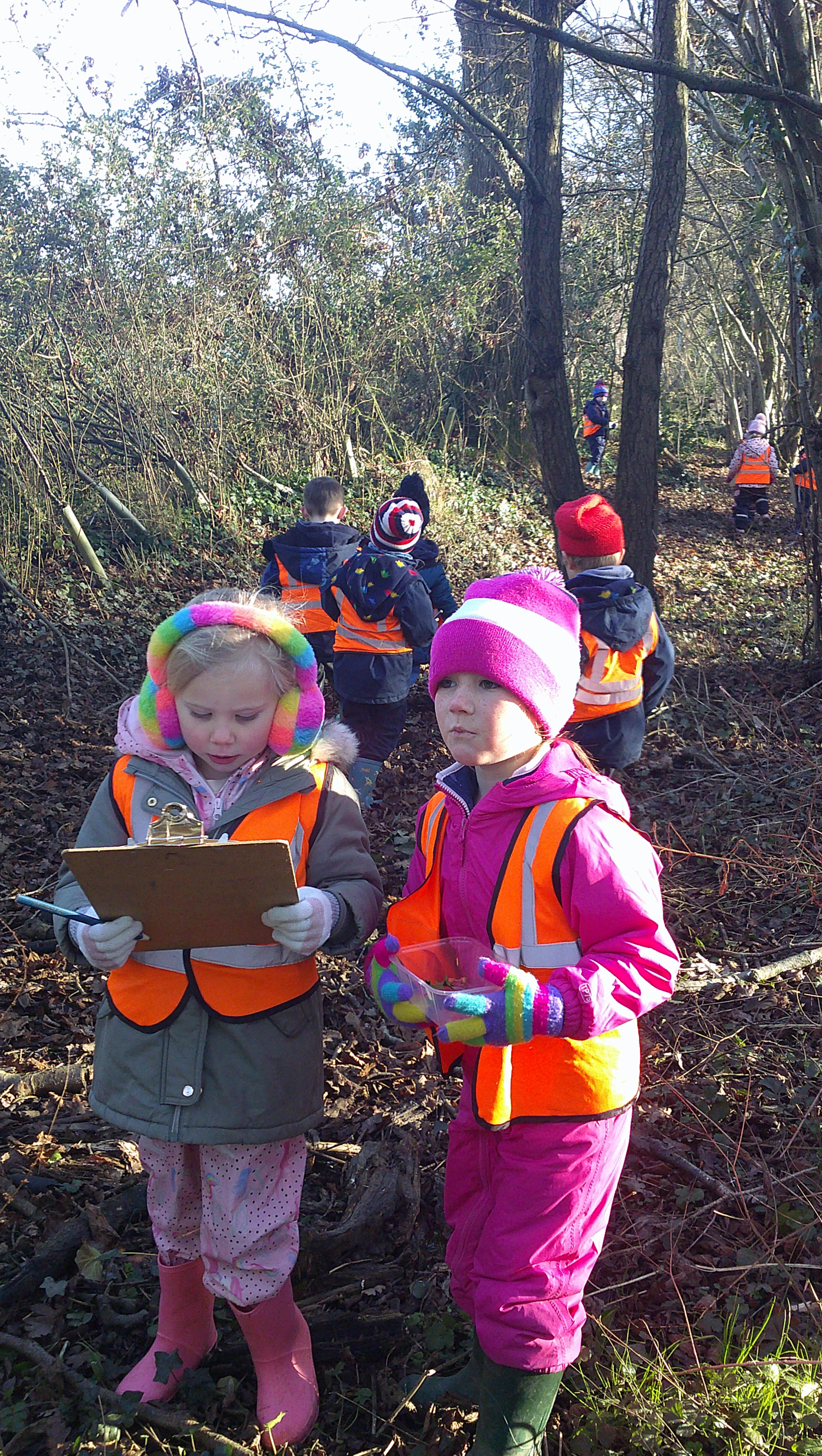 We enjoyed exploring The Parks Plantation, whilst hunting for forest treasure and looking for signs of winter. Special treasures included: bone fragments, empty snail shells, leaves, sticks, holly berries, nuts and feathers. We cannot wait to go back next week!